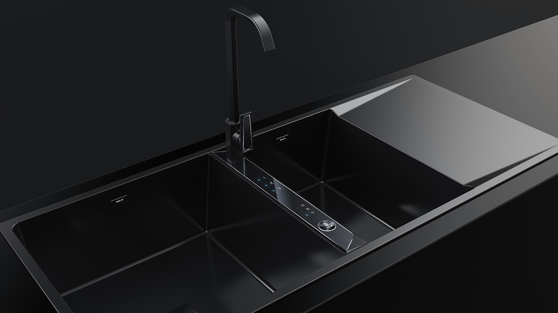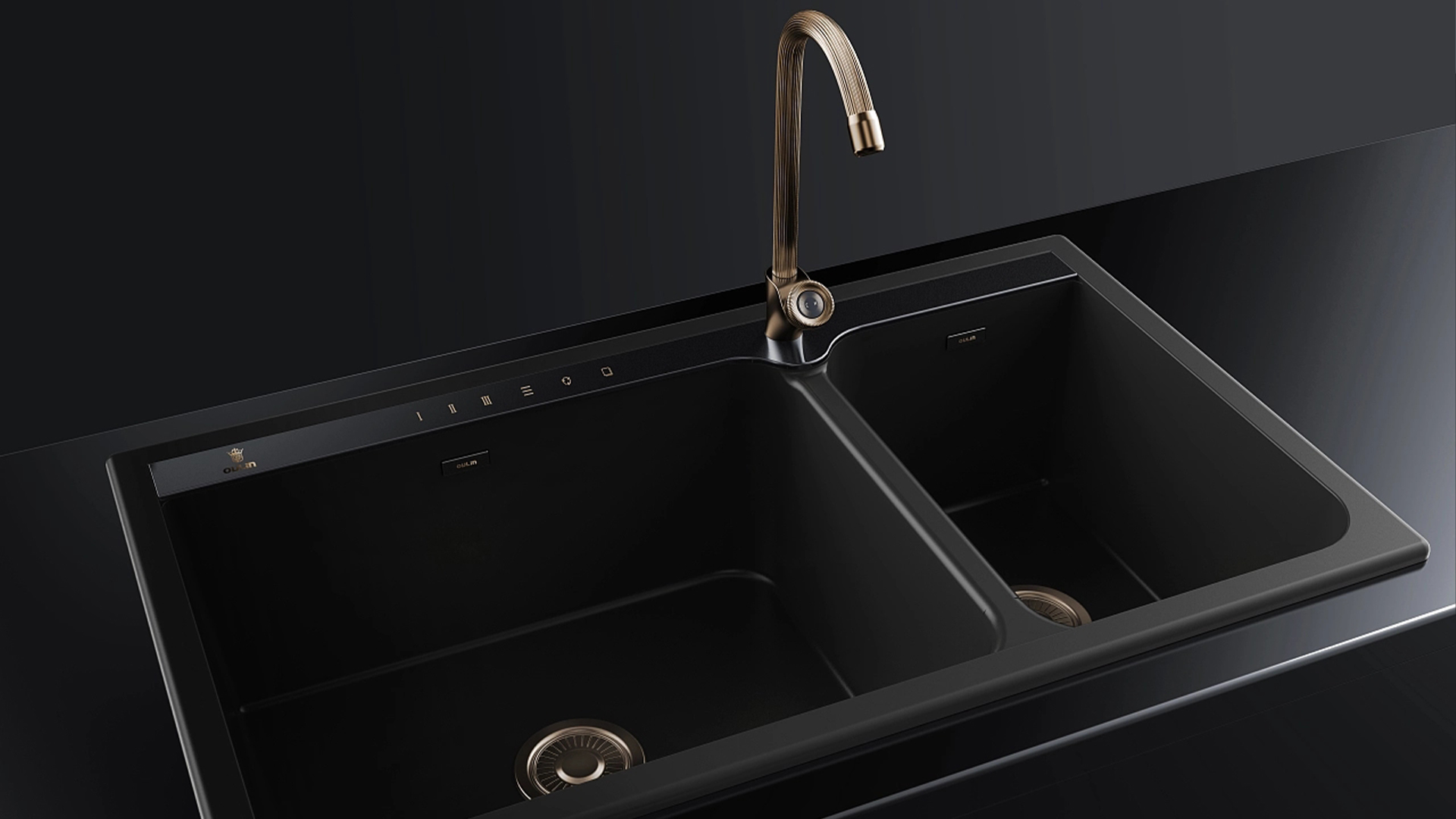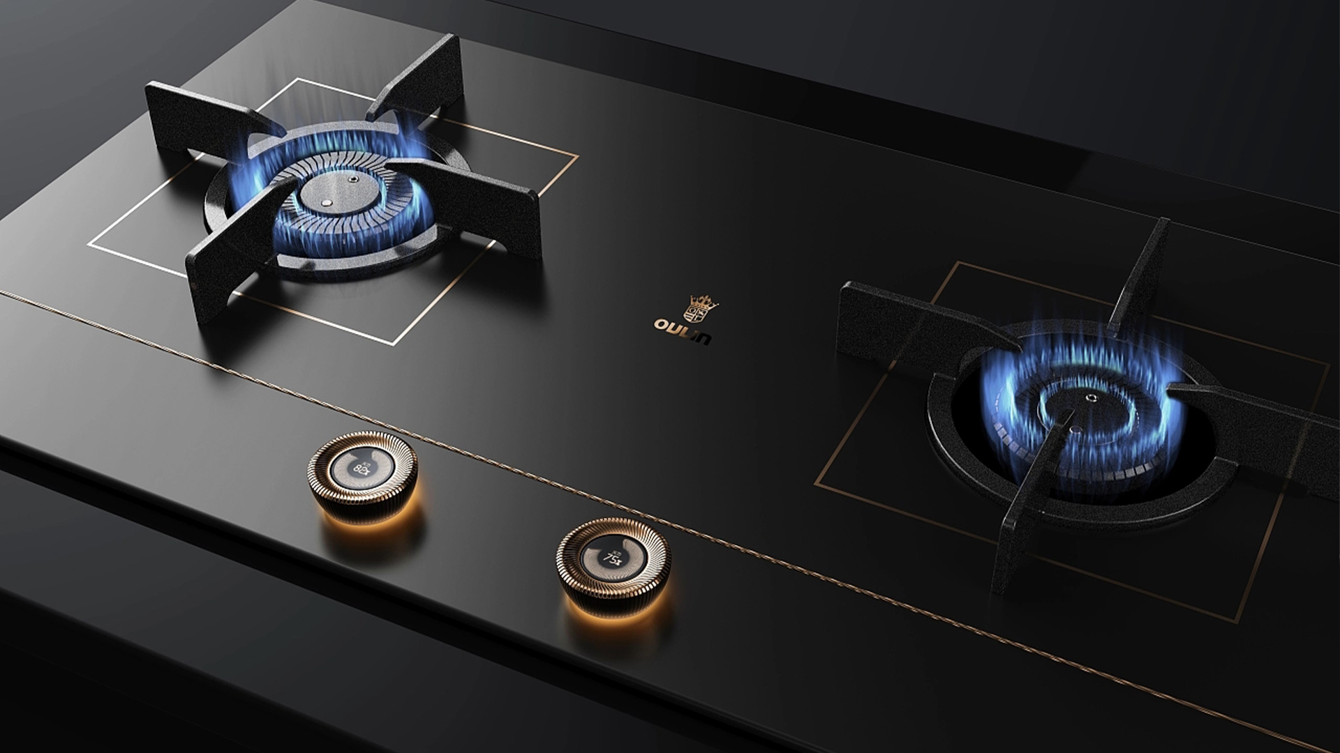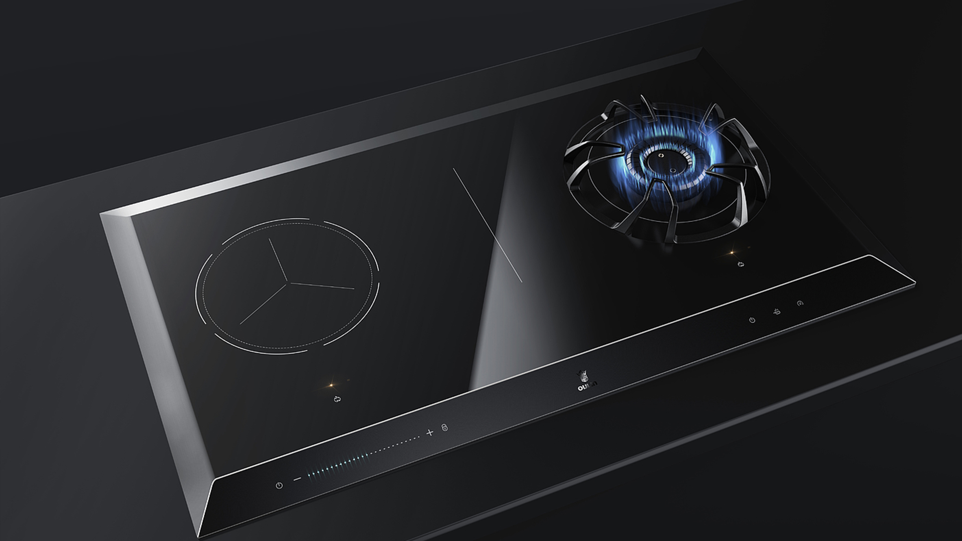 外觀上,該系列廚房電器外觀采用黑色鋼化玻璃,配上高亮銀色、玫瑰金的航空鋁材,按照美學比例進行幾何分割,給人高端價值的印象。油煙機內部采用內單層O型過濾網,外平板側吸過濾,內外結合油煙徹底分離,健康環保。精確的45度黃金斜角敞開設計,防止用戶意外磕碰。整體采用近距快吸式設計,徹底排除油煙。同時,我們擴大了金屬油杯的容量,減少倒油次數,從根本上方便使用者清理。在燃氣灶設計上,我們大膽采用顯示屏+觸控調節按鍵設計,任意調控烹飪模式,為用戶帶來更智能的廚房體驗。