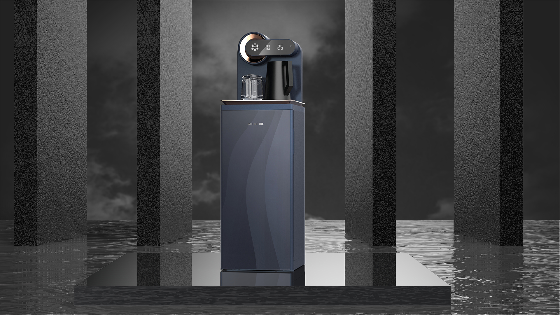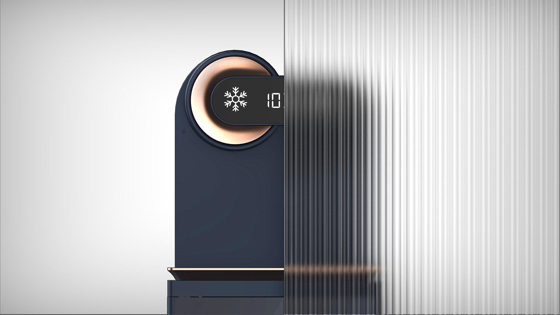 外觀上,產(chǎn)品靠背上的設(shè)計突破了市面上大多數(shù)茶吧機(jī)的規(guī)整體塊式,利用圓形的視覺凝聚力,將大屏與出水口相結(jié)合,整體迎合了智能家電市場的趨勢——大屏幕智能化,再使用局部的電鍍效果增加層次感,來展現(xiàn)產(chǎn)品的高端屬性,大尺寸吧臺,操作方便無需彎腰。