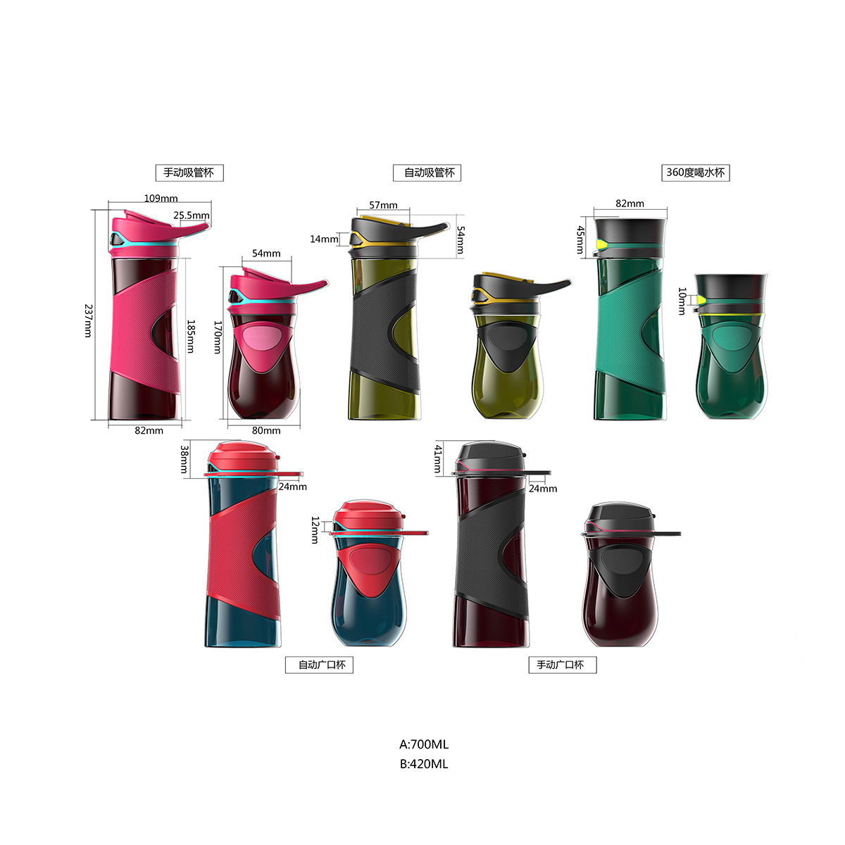 各具特色的杯蓋設計,使水杯在各類出行時,攜帶更加方便,廣口設計,讓水杯清洗更加便利。水杯大體材質采用塑料,不易碎,堅固耐用,而且重量輕,方便攜帶。