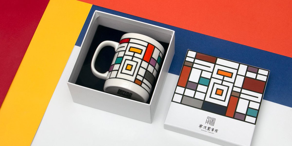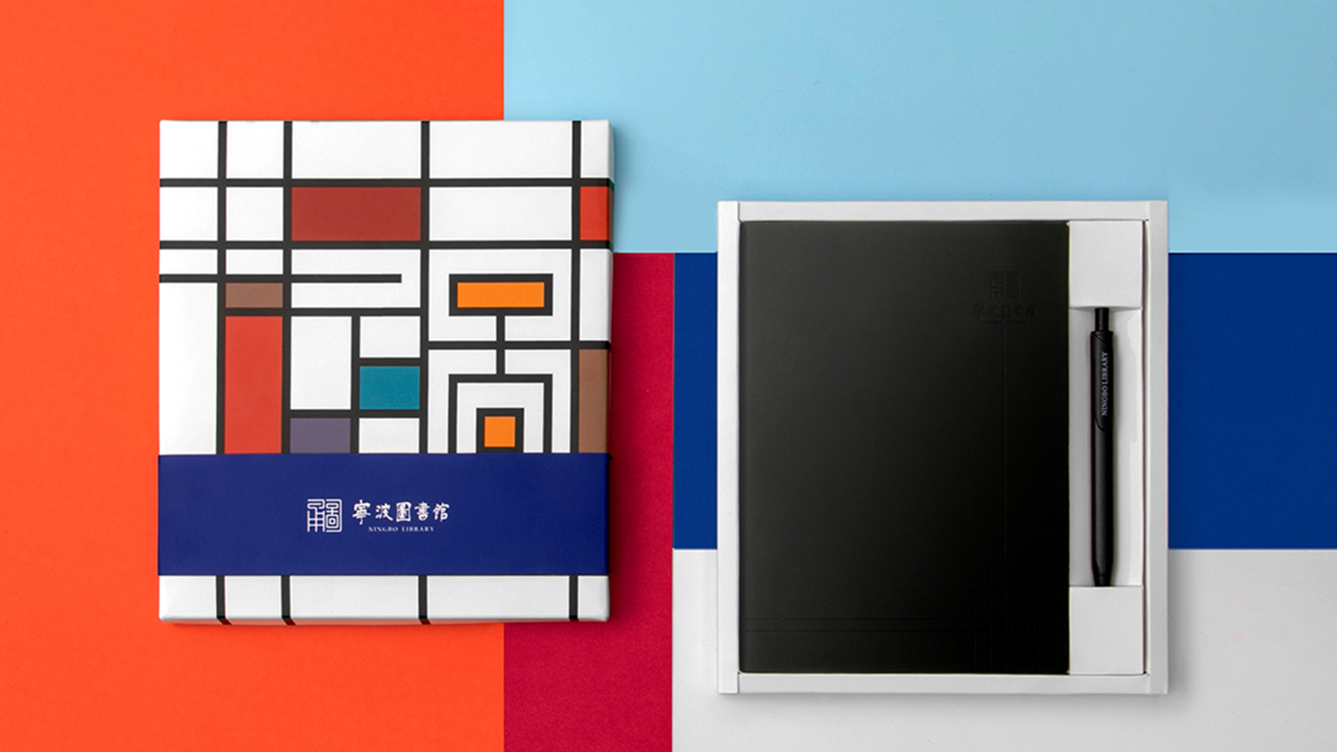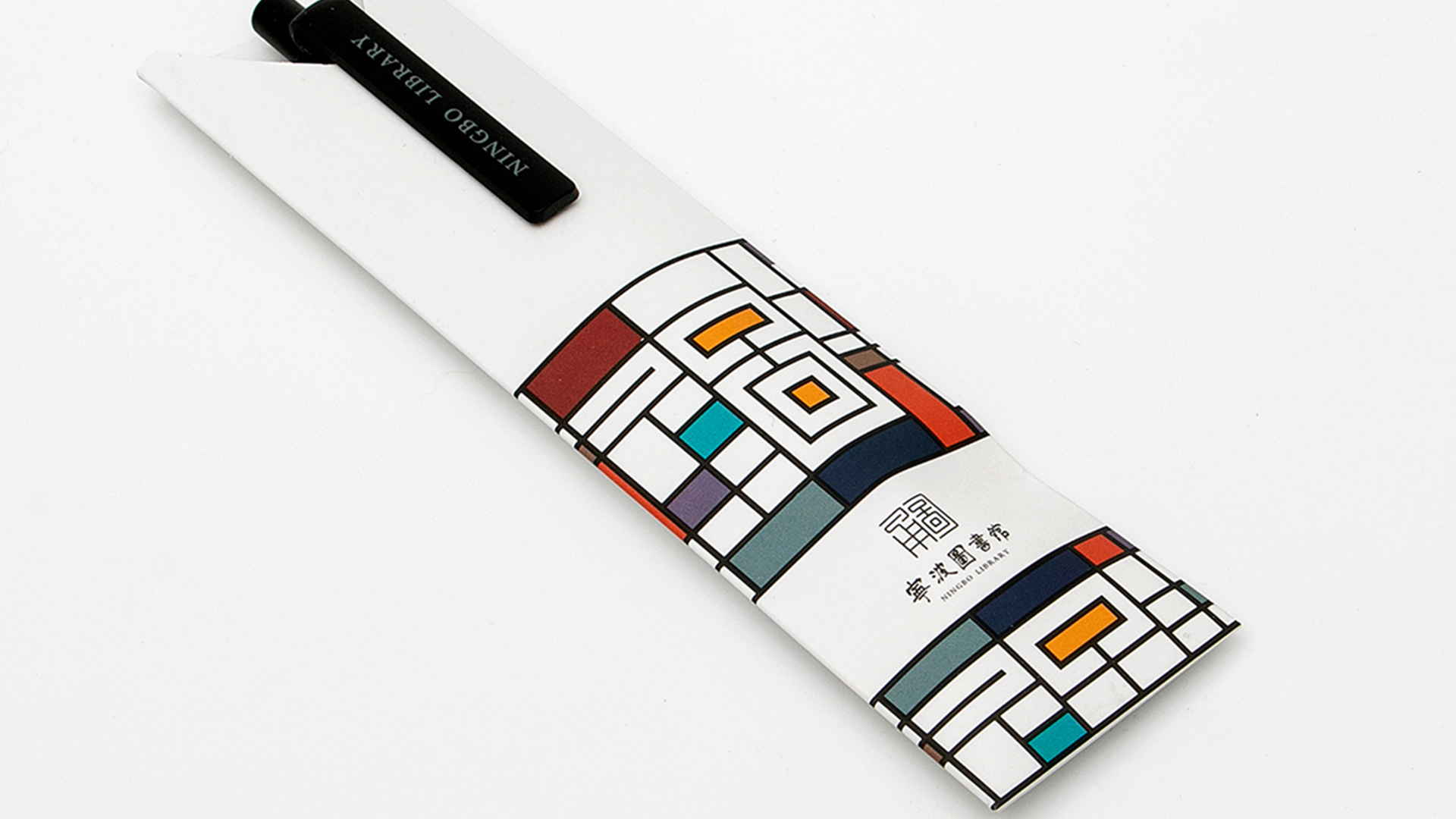 形式一:標識整體分為兩部分,一部分是"甬圖"二字使用了"篆法"的變形,另一部分是"寧波圖書館"書法字體,設計師用現(xiàn)代手法最大程度的還原了任繼愈先生的字體原貌,使之更加平衡穩(wěn)重,可視為一種歷史文化記憶。將新館建筑中提取的線面元素與蒙德里安風格結合,產(chǎn)生了最初版的應用圖形。但是純粹的蒙德里安元素,在圖書館文創(chuàng)的應用上總顯得有些許單薄,多次的更改與嘗試中,圖書館logo的出現(xiàn)讓設計師的眼睛亮了起來,同樣的塊面化元素,為什么不做一個結合呢?