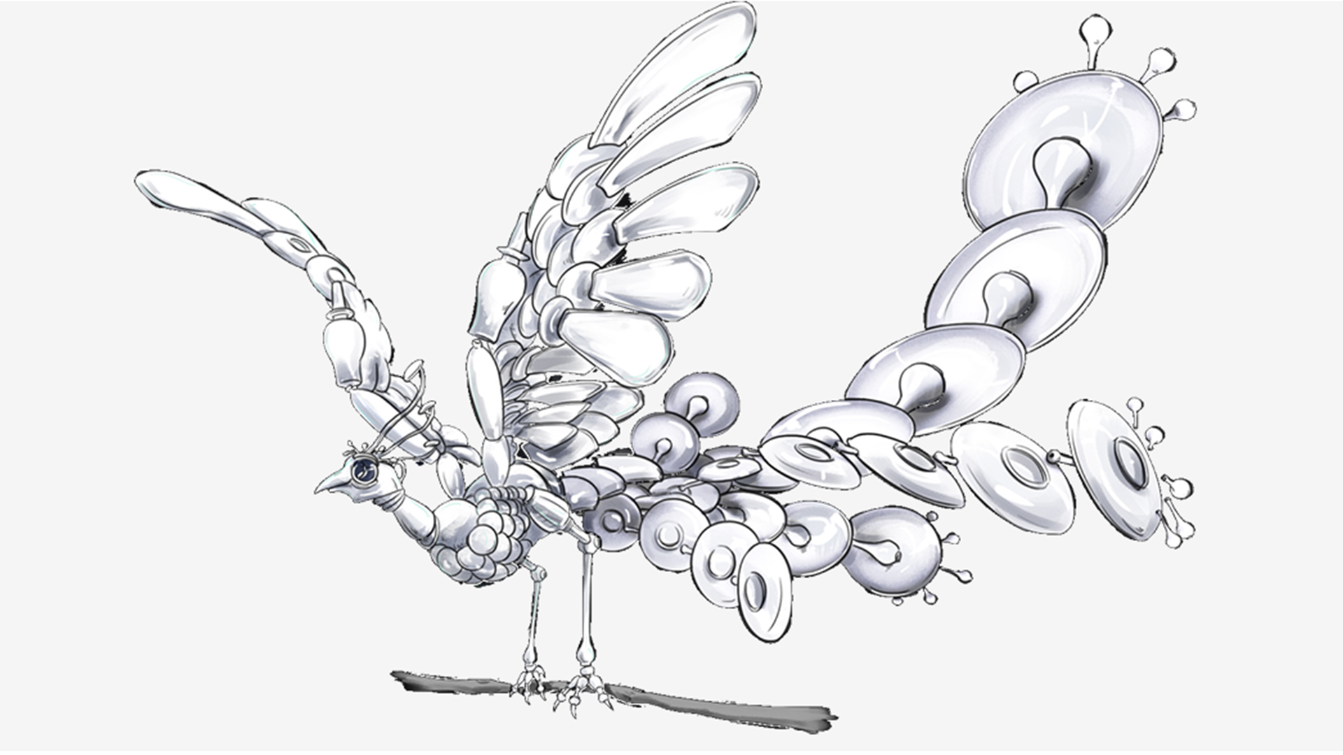 YU是一只由著名釉色瓷構(gòu)成的瑞獸。YU在瓷世界中掌管“瓷”之釉色,他的設(shè)計(jì)原型是“朱雀”。朱雀作為傳說(shuō)中的神鳥,總是充滿了神秘的浪漫主義色彩。YU最開始出場(chǎng)時(shí)被設(shè)定為一只純白色的朱雀,當(dāng)她開屏?xí)r,會(huì)吸收環(huán)境中的顏色(10件中國(guó)著名顏色釉瓷器上的顏色),瞬間變得光彩照人。