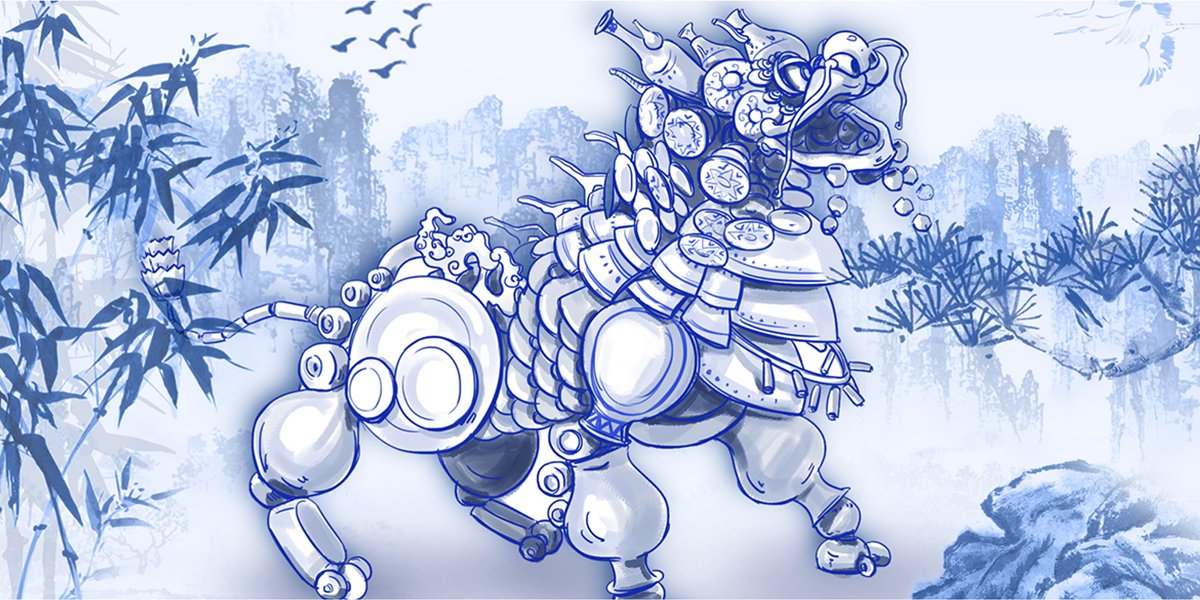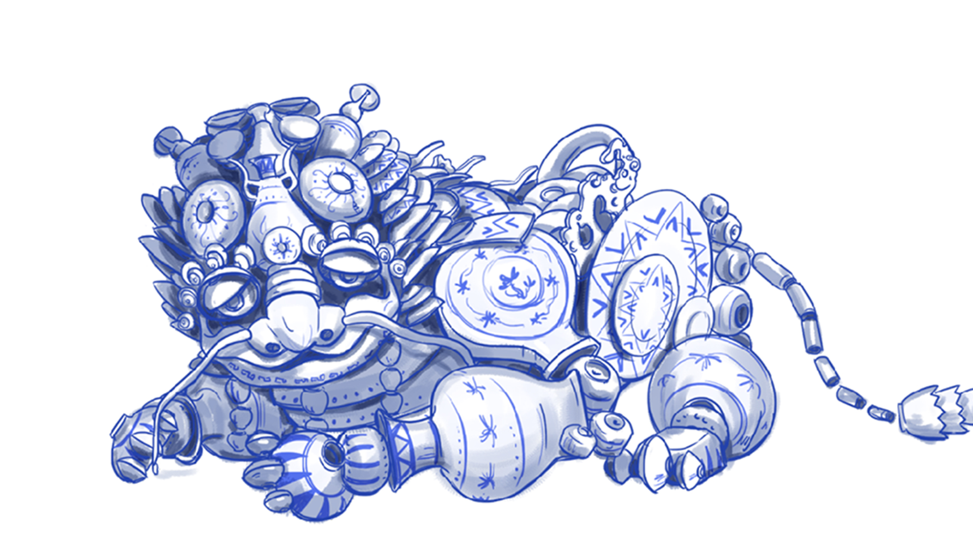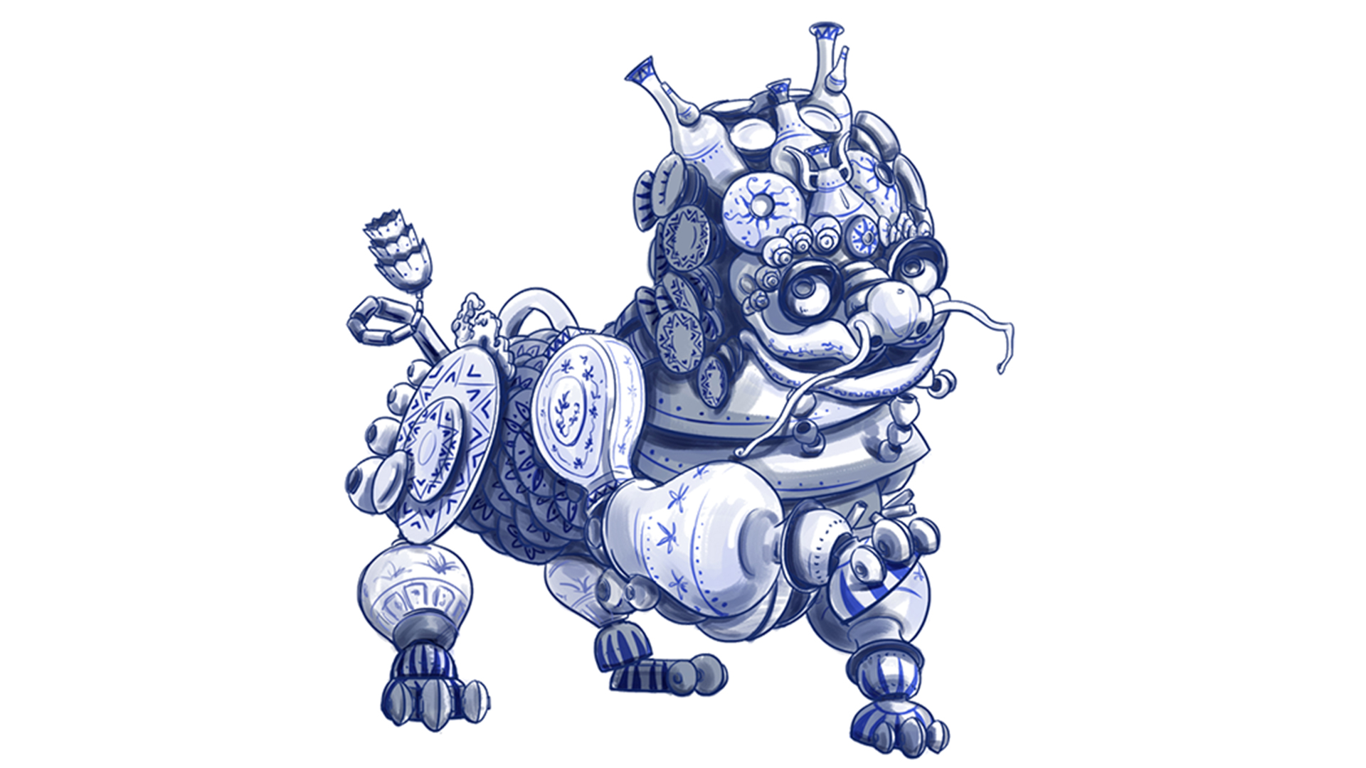LONG是一只由著名御窯的瓷器構(gòu)成的瑞獸。LONG在瓷世界中掌管“瓷”之燒制,他的設(shè)計(jì)原型是“龍,組合他的瓷器原型主要選用清代“御窯”的代表作,特別是以造型技術(shù)見長(zhǎng)的“雙聯(lián)瓶”、“各種釉彩大瓶”等器型拼合而成。御窯之集大成由“LONG”這一角色來(lái)演繹,也是從權(quán)力巔峰的視角對(duì)瓷文化進(jìn)行了另一個(gè)角度的詮釋。