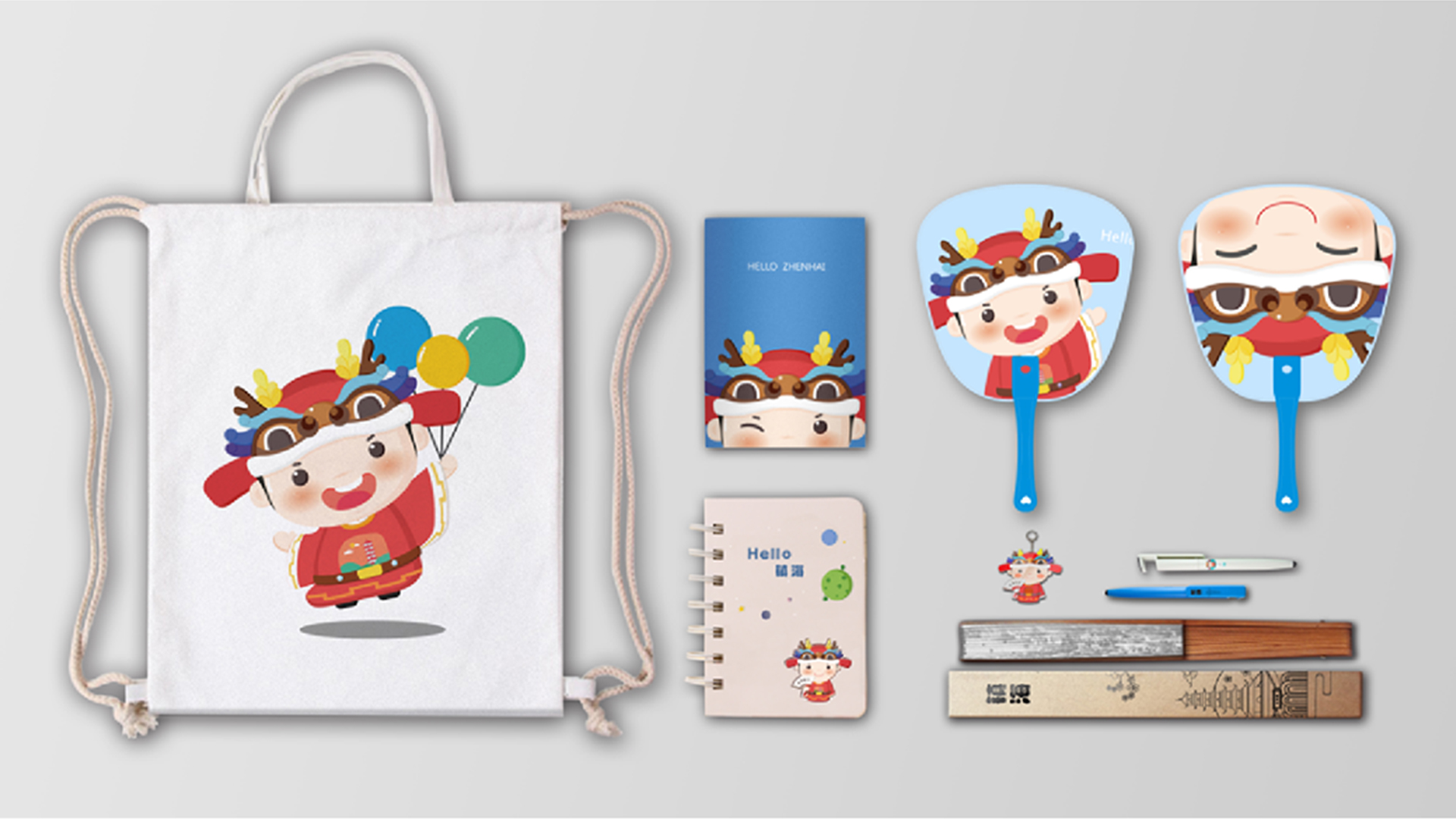 木馬在開展鎮海吉祥物形象和衍生品設計之前,對鎮海進行了詳細的了解,整合了鎮海的地理環境、文化象征和風俗人情,重點提取了招寶山作為當地人文元素的設計點,配合當地的社會生活和人文節慶,設計出鎮海吉祥物以及衍生品。鎮海吉祥物和衍生品以獨特的本土特色,成為鎮海的旅游形象象征,吉祥物和衍生品的外觀引導用戶在使用情境中感受設計所營造的屬于鎮海的異域風情。