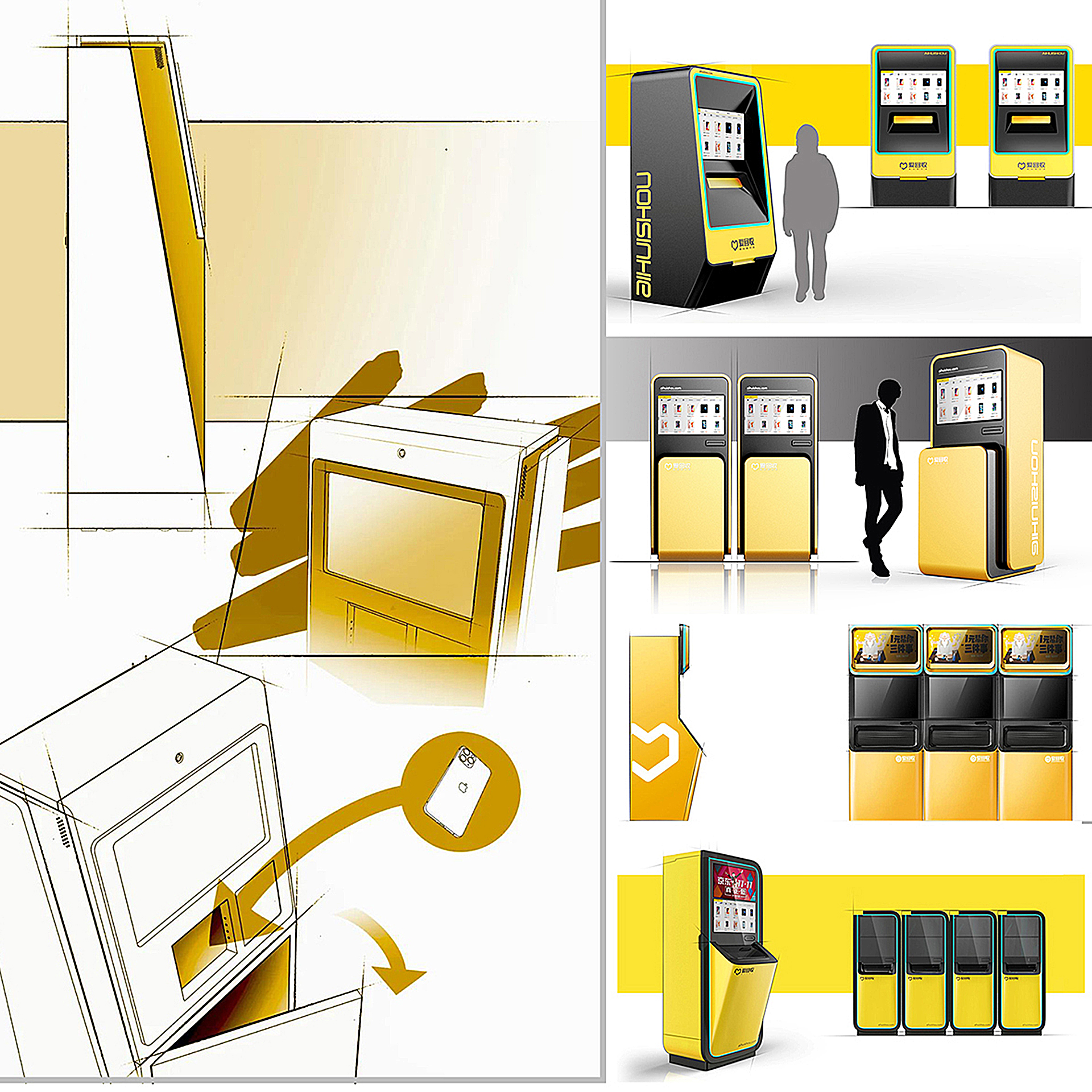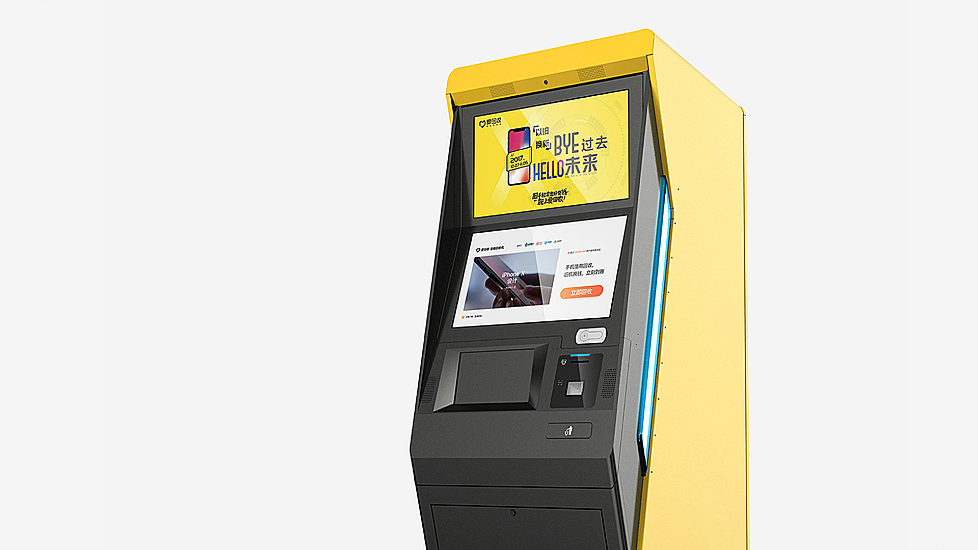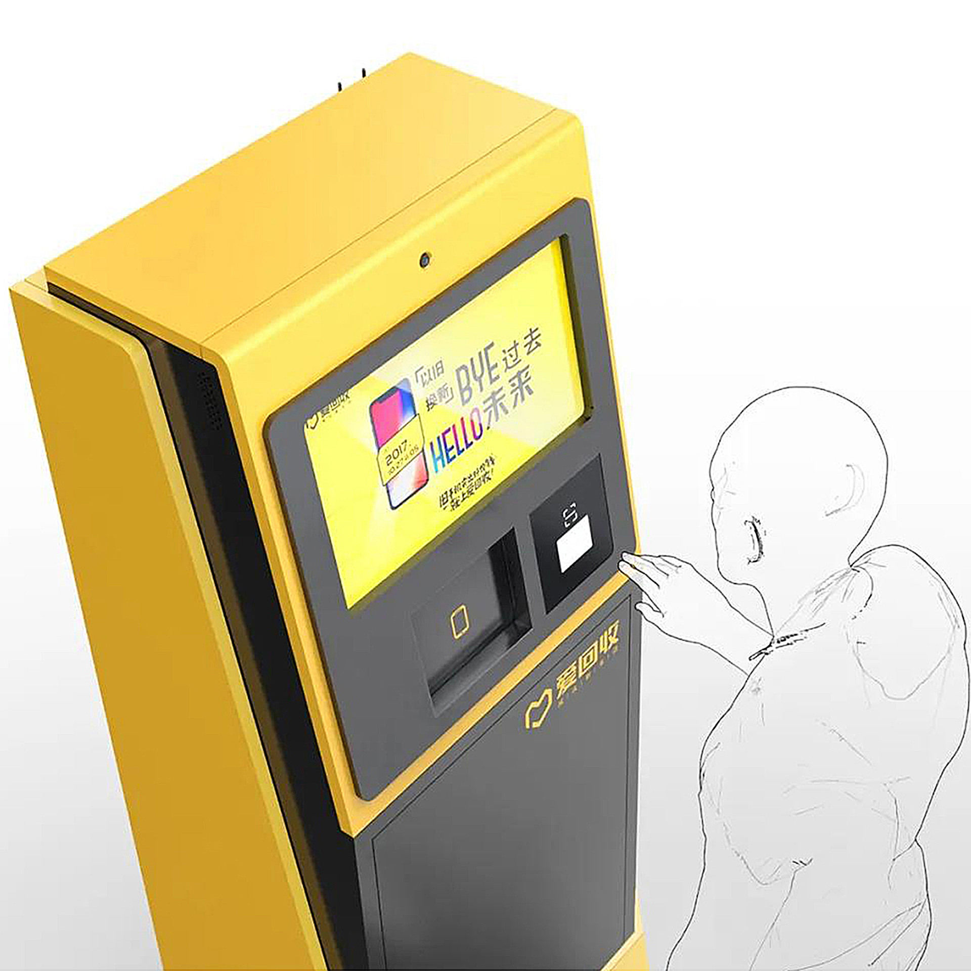 受到商場里ATM機以及一些互動屏的啟發,愛回收選擇了人們生活息息相關的社區、運營商運營廳、寫字樓、便利店、地鐵、商超等場景入駐,讓用戶不用費力尋找愛回收的門店,而是近在身邊、觸手可及。它采用全自助形式結合芝麻信用的風控體系,為用戶提供自動回收,當場預付部分回收款,三天內完成交易的回收體驗。采用模塊化分屏的方式解決了使用和宣傳問題,頂部的屏幕即使被遮擋住,來往的路人也能了解到回收機的作用,保證了產品的宣傳性。