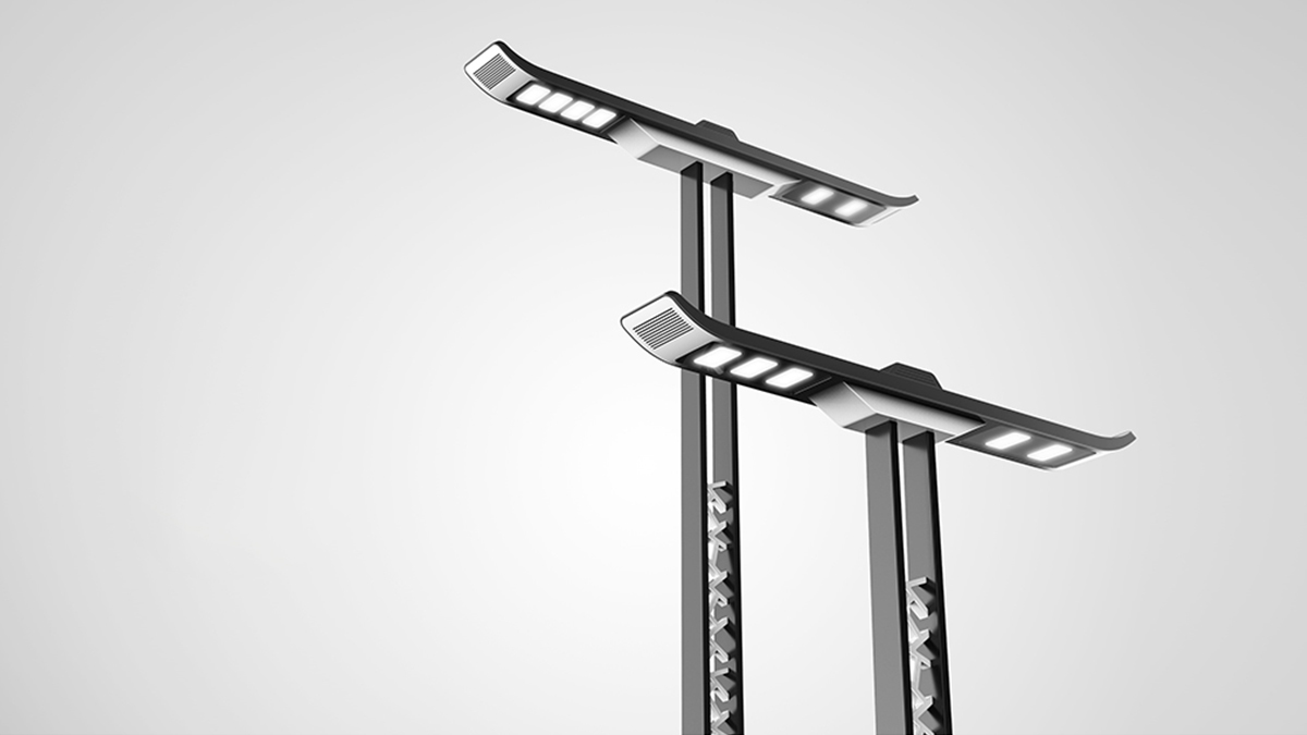 以江南獨特的建筑風格設計此款路燈,應用白墻黑瓦的色彩,將烏黑的瓦房上翹元素運用至路燈的照明位置,加以花窗式錯落有致的紋路樣式,讓此款路燈更具江南風,營造了獨特的江南韻味。