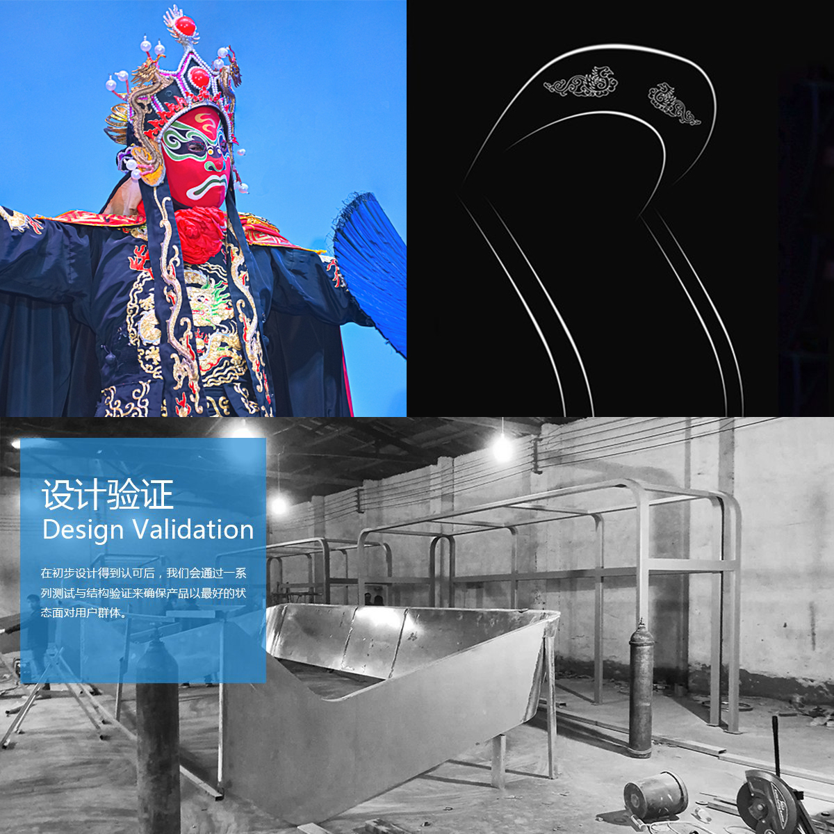 雙層立體自行車庫是成都市政府與中國最大的鋼結構公司中建鋼構合作規劃并委托木馬設計的一款產品,基于成都市經濟與文化的迅速發展,以及城市發展所面臨的環境與規劃問題,雙方意在推出一款能改變共享單車停放亂現狀的產品。木馬通過對成都市的文化背景研究,提出了川劇臉譜的概念,得到了成都市政府的高度認同。
