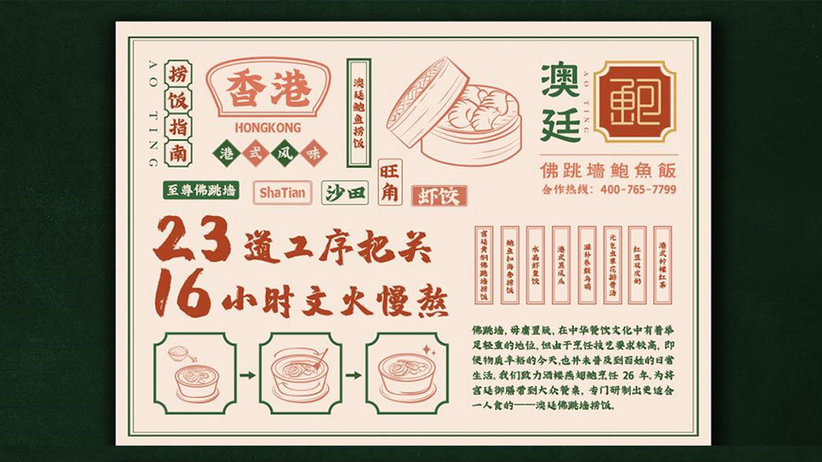 打造現(xiàn)代年輕化餐飲品牌澳廷鮑魚撈飯。原料雖貴,絕不以次充好;炮制雖繁,絕不偷工減料。澳廷佛跳墻鮑魚飯隸屬于寧波聚食力品牌管理有限公司,與寧波木馬設(shè)計(jì)共同打造策劃的餐飲品牌。