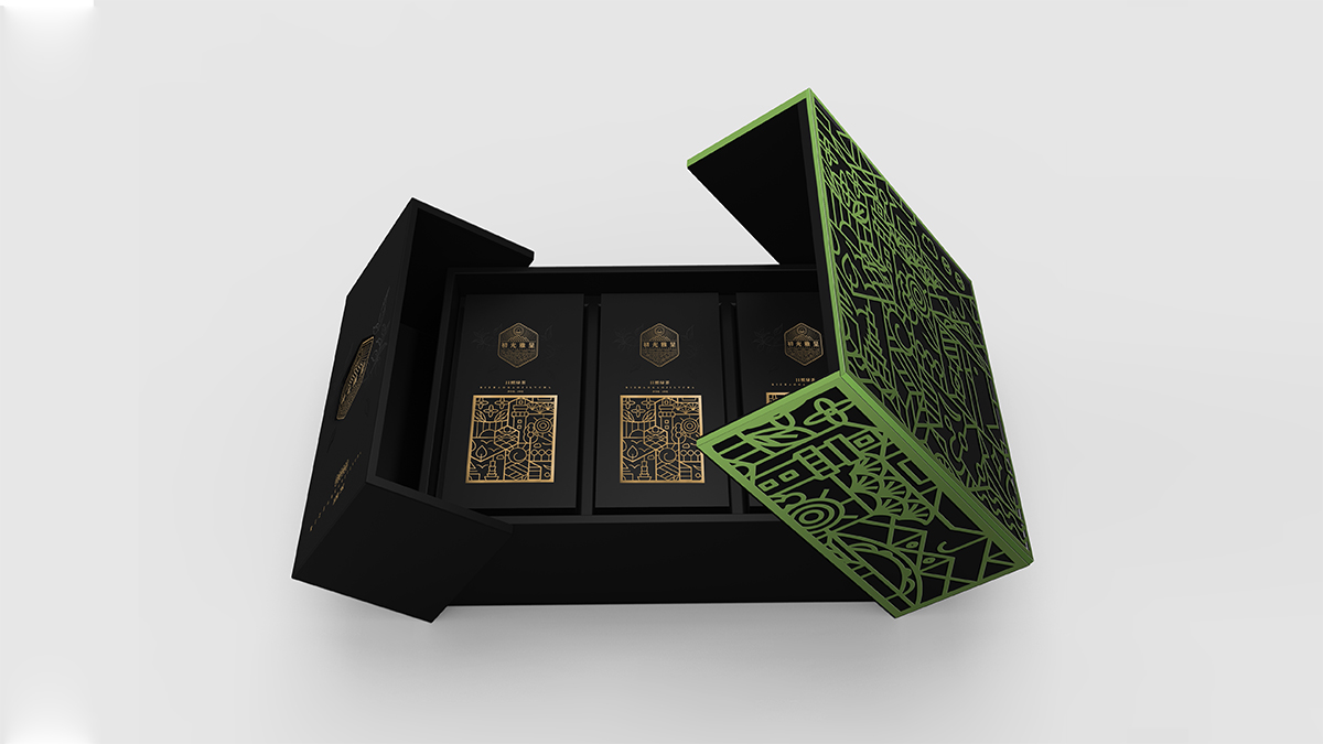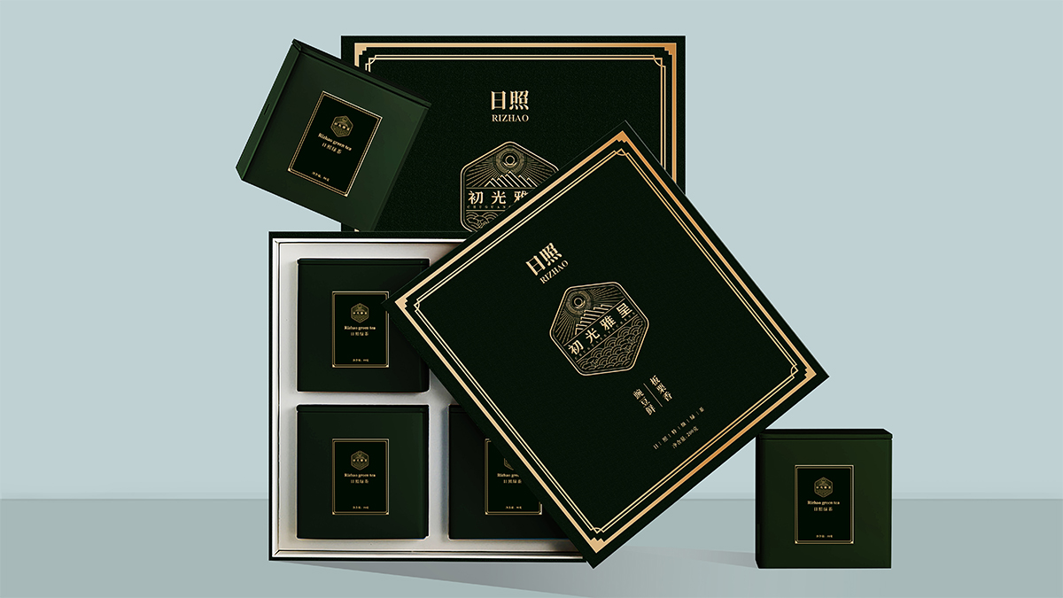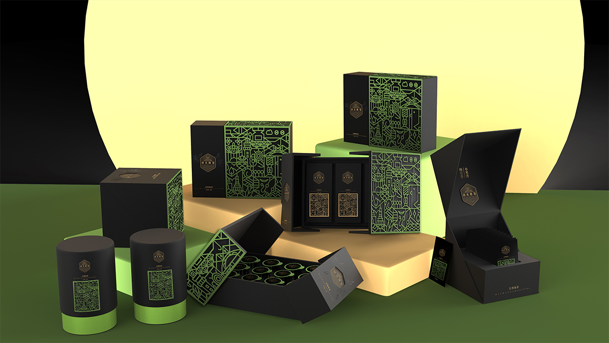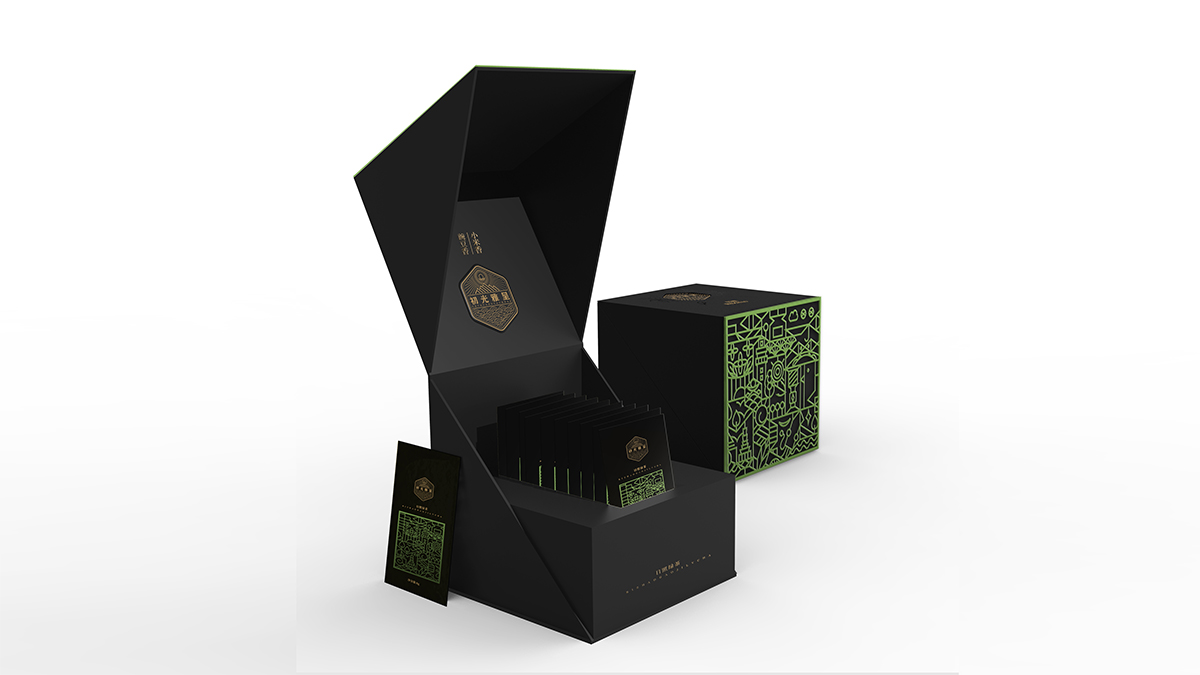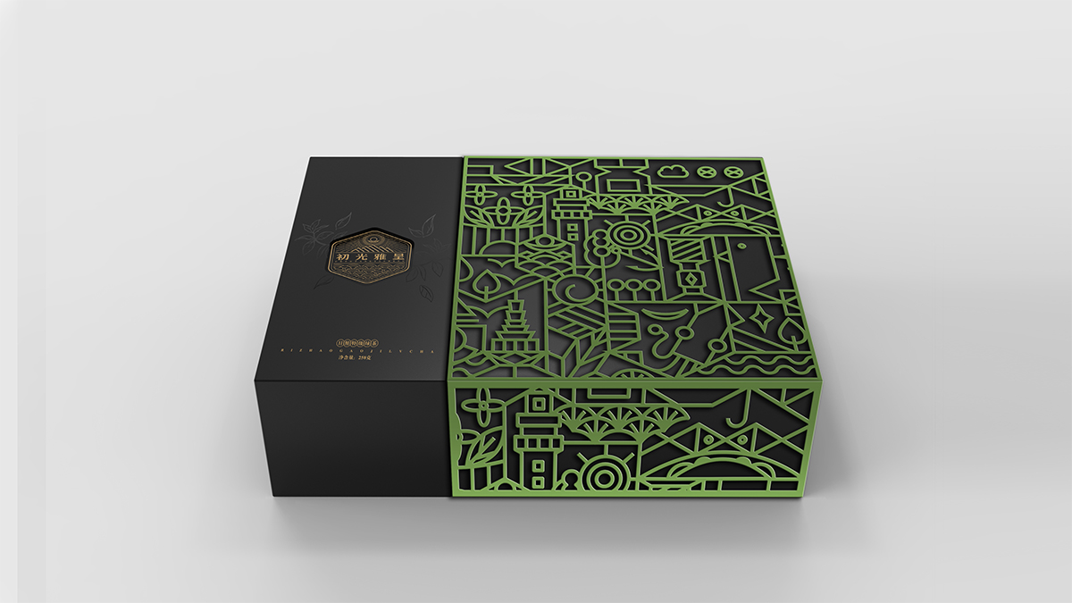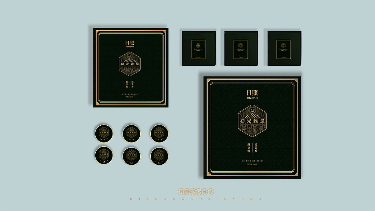 基于品牌風(fēng)格定位,我們以體現(xiàn)產(chǎn)品的高端、高品質(zhì)、文化屬性以及歷史厚重感為設(shè)計(jì)的主要方向。我們對于包裝應(yīng)用:色彩是保持品牌可視化的強(qiáng)大工具,在包裝用色上,我們主要以太陽文化、茶葉為原型,提取其中顏色,將黑、金、綠相結(jié)合,深沉、古樸、高雅,賦予品牌高端感,具有強(qiáng)烈的視覺沖擊力。