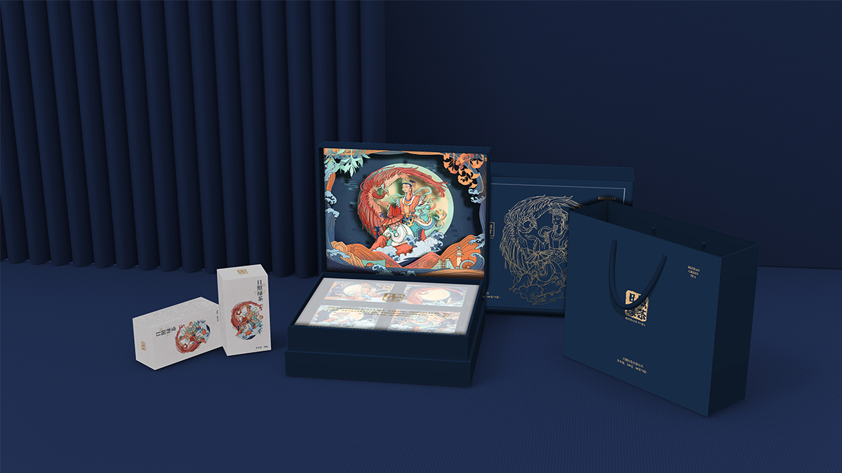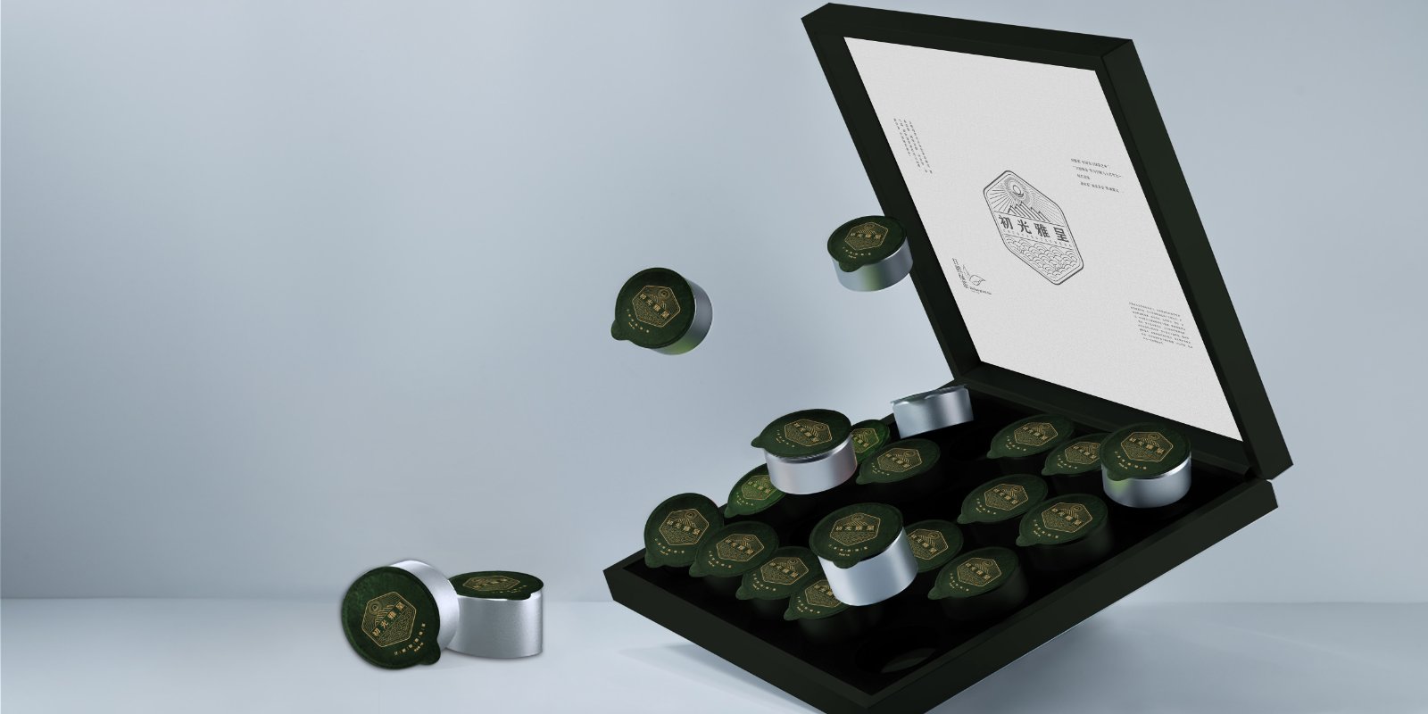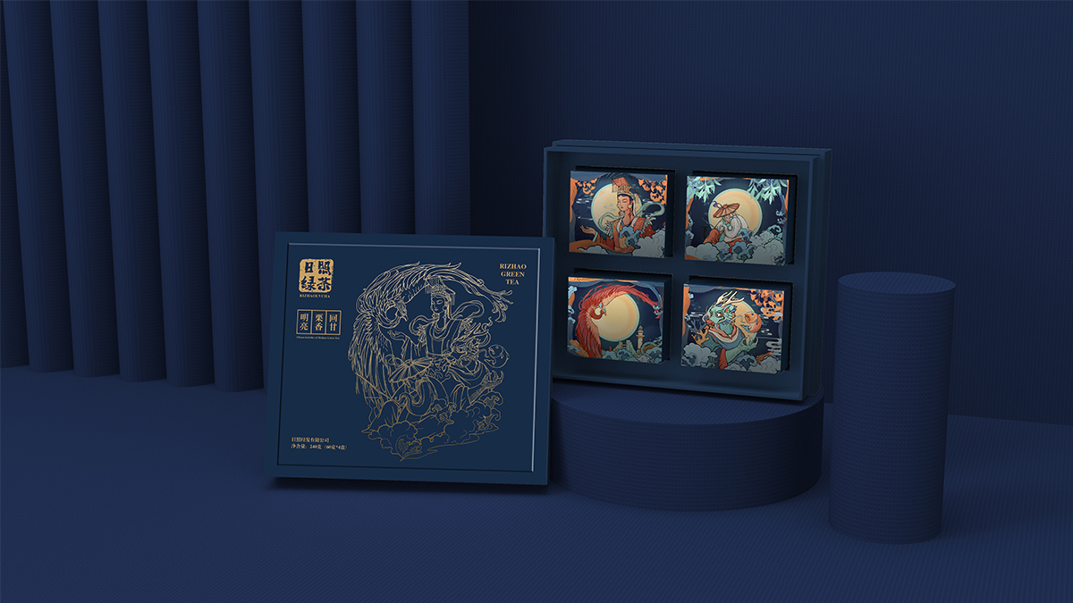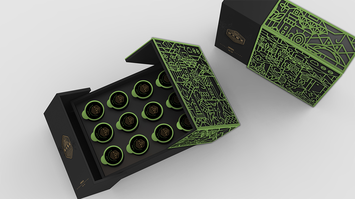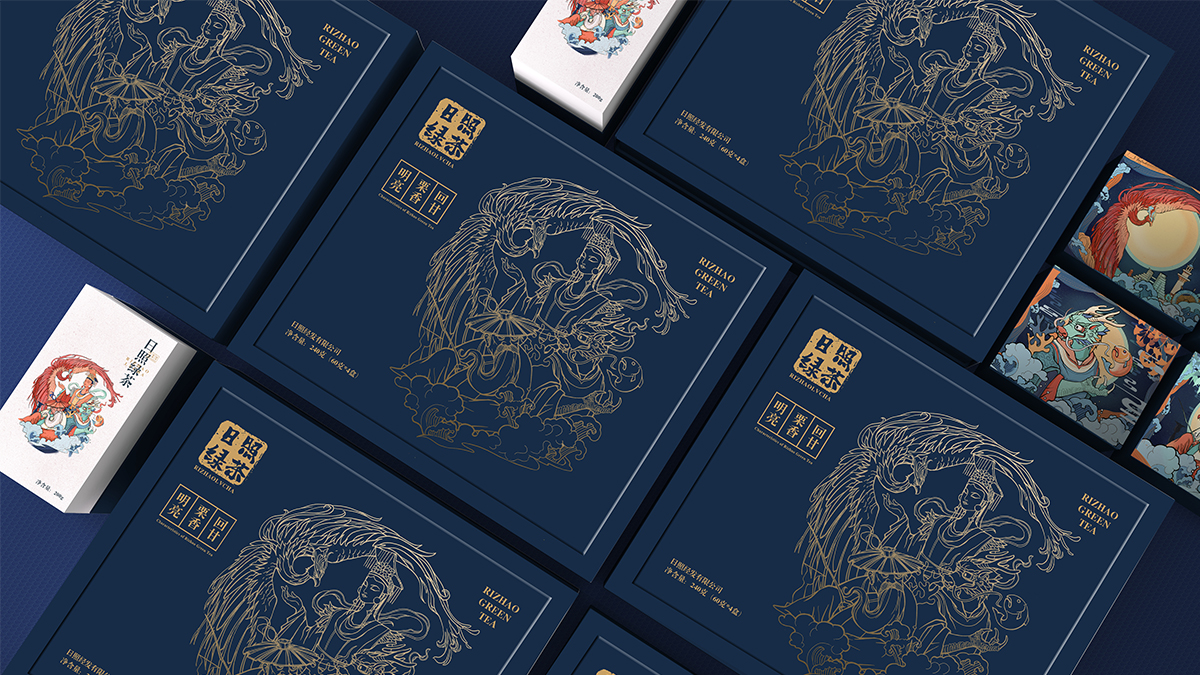 基于品牌風(fēng)格定位,我們以體現(xiàn)產(chǎn)品的高端、高品質(zhì)、文化屬性以及歷史厚重感為設(shè)計(jì)的主要方向。我們對于包裝應(yīng)用:色彩是保持品牌可視化的強(qiáng)大工具,在包裝用色上,我們主要以太陽文化、茶葉為原型,提取其中顏色,將黑、金、綠相結(jié)合,深沉、古樸、高雅,賦予品牌高端感,具有強(qiáng)烈的視覺沖擊力。