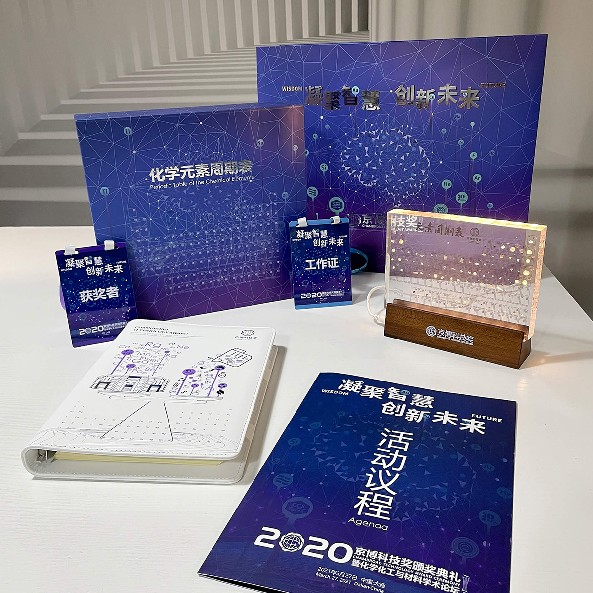 木馬設計北京負責了整場典禮的流程策劃、視覺設計、主KV設計、典禮PPT以及伴手禮設計,并負責和參與了整個現場的布置工作。進入會場,映入眼簾的是我們設計的舞臺視覺,以藍紫色為主,大屏幕上浮動的元素與現場音樂配合,莊重而不失靈動,精致而不失大氣,給嘉賓良好的視覺聲覺體驗。頒獎典禮進行中,舞臺的燈光隨現場氛圍而變,沉浸感十足。這場典禮凝聚了木馬設計北京所有小伙伴的心血與智慧,2020京博科技獎頒獎典禮的圓滿結束,木馬設計北京不負眾望!