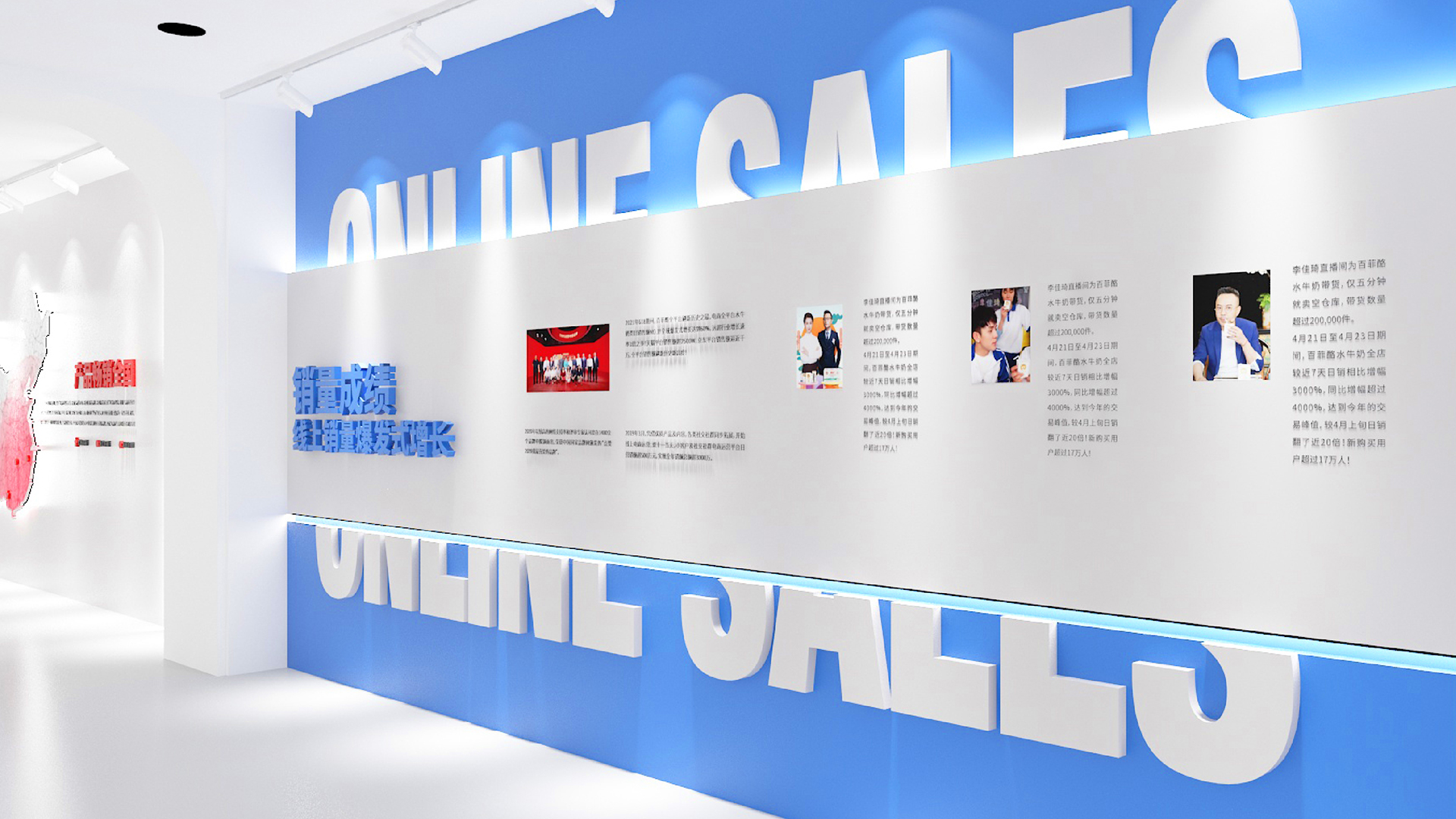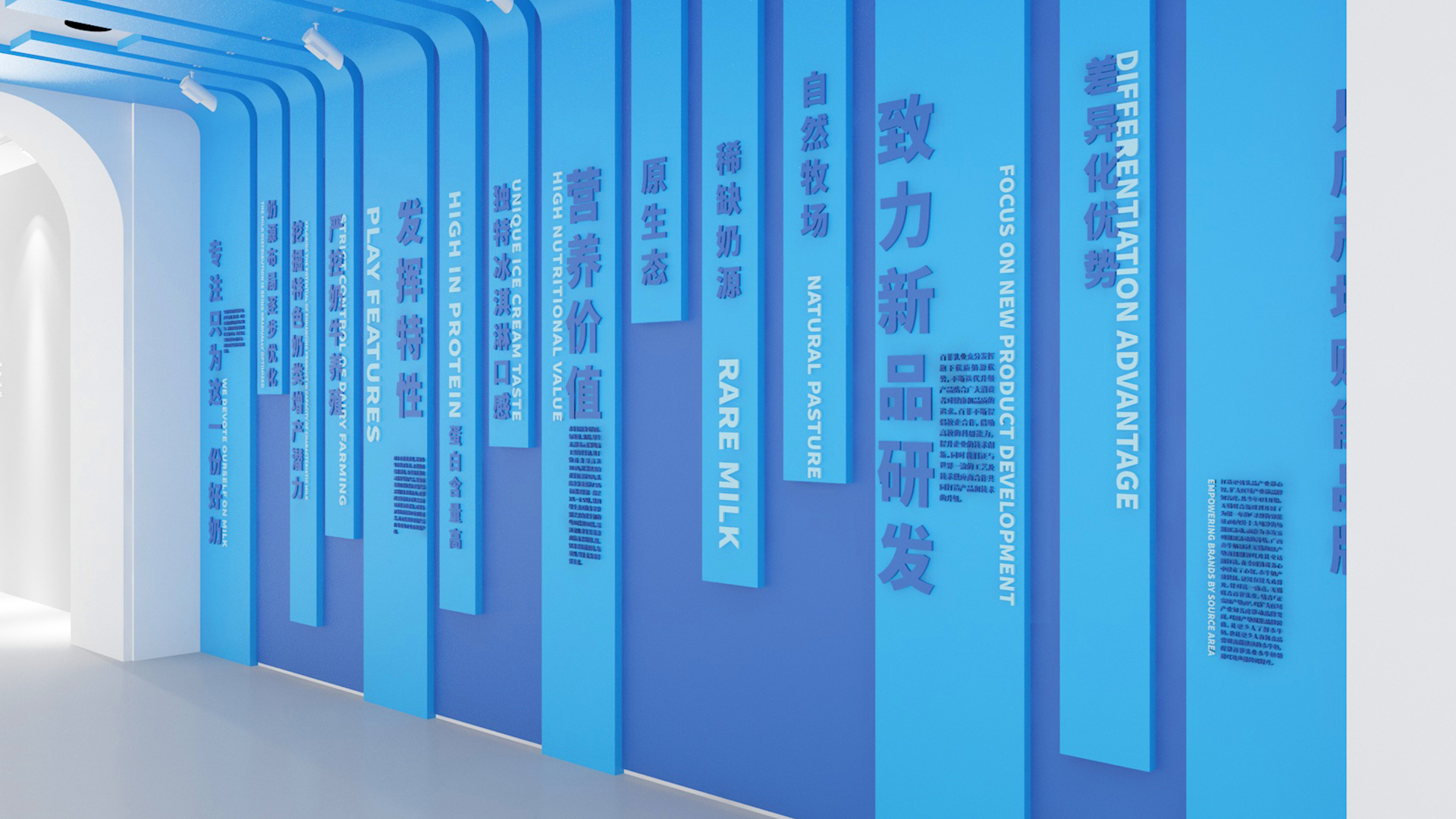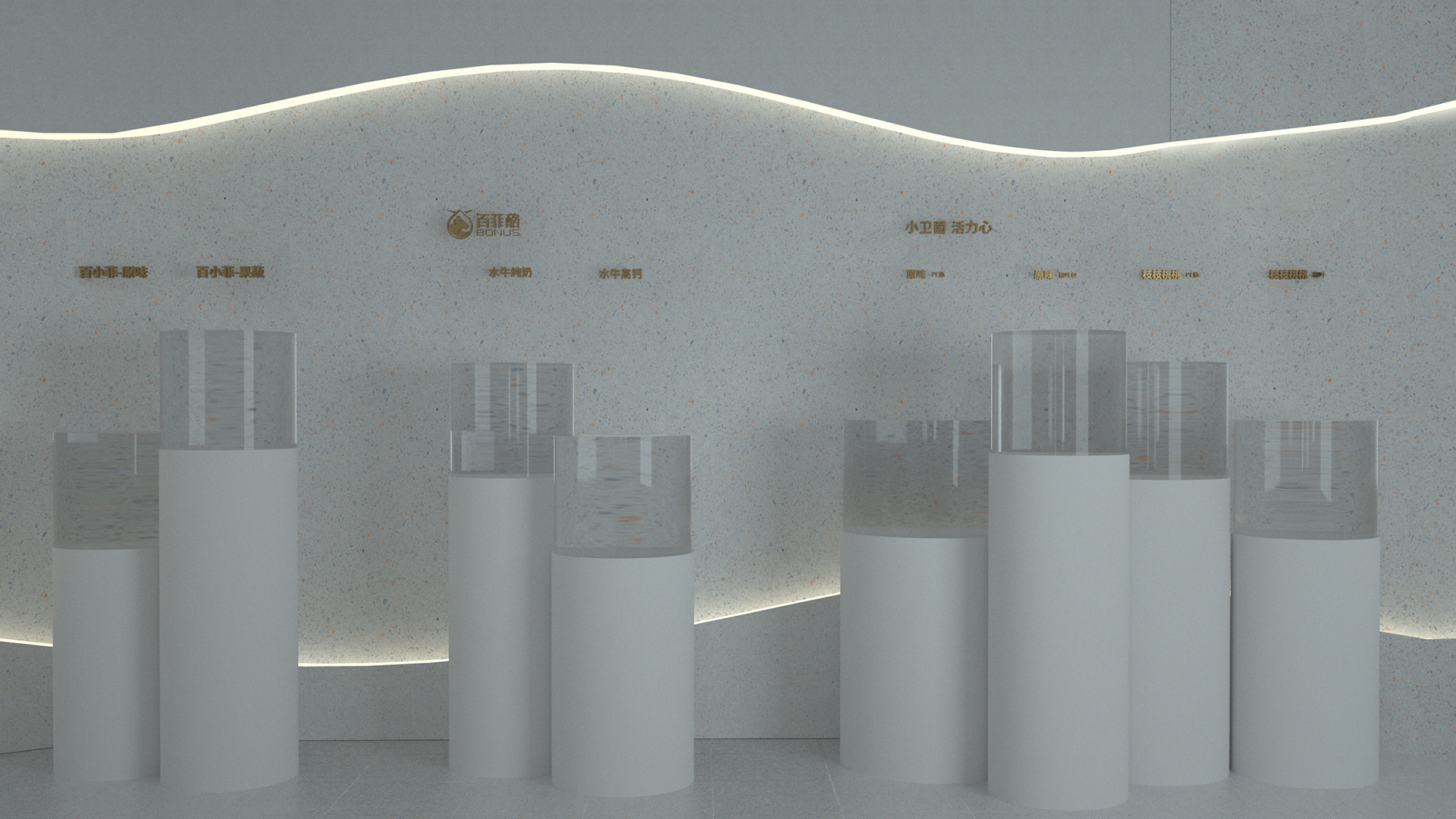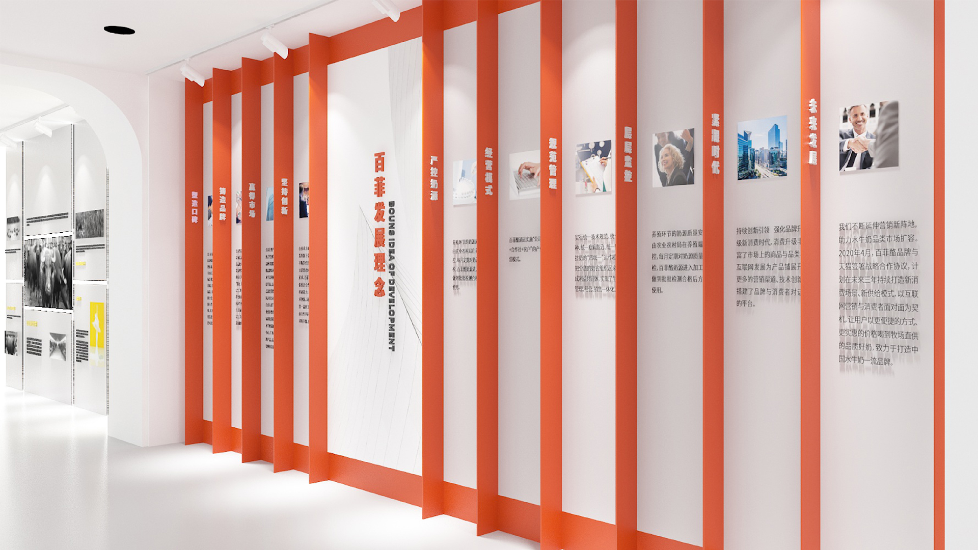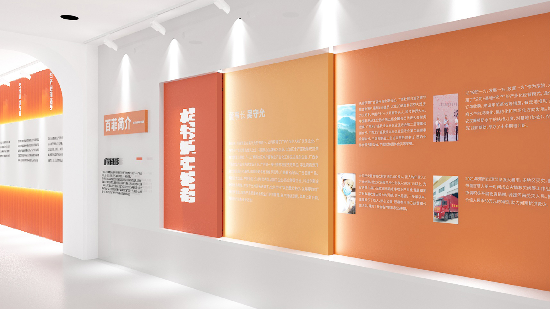 長廊文化墻以彩虹為創意,依次講述百菲從0-1的品牌故事。色彩明亮讓人眼前一亮,顏色的變化與豐富讓人更有興趣。彩虹寓意著美好。百菲一路保持初心,專注研發保證品質,最終好的產品被消費者認可,雨后彩虹好運會一直陪伴。