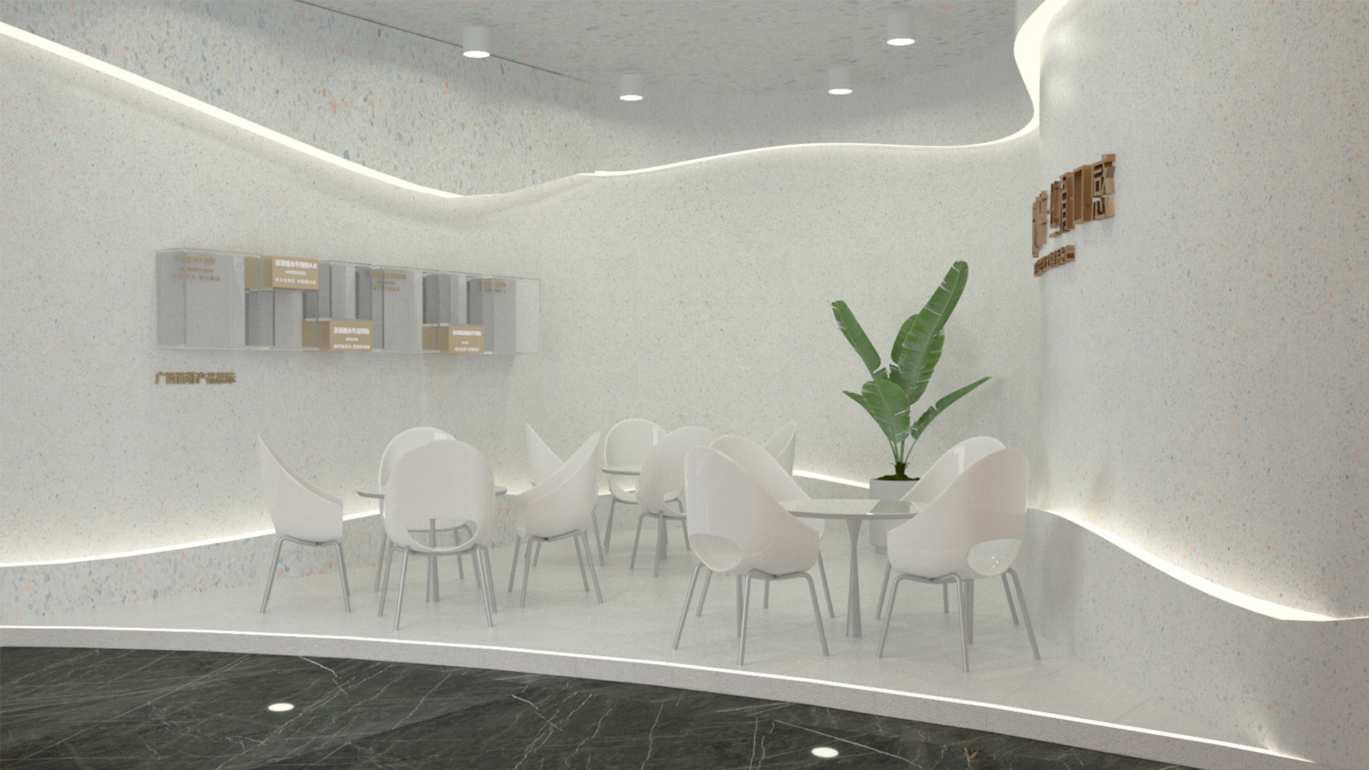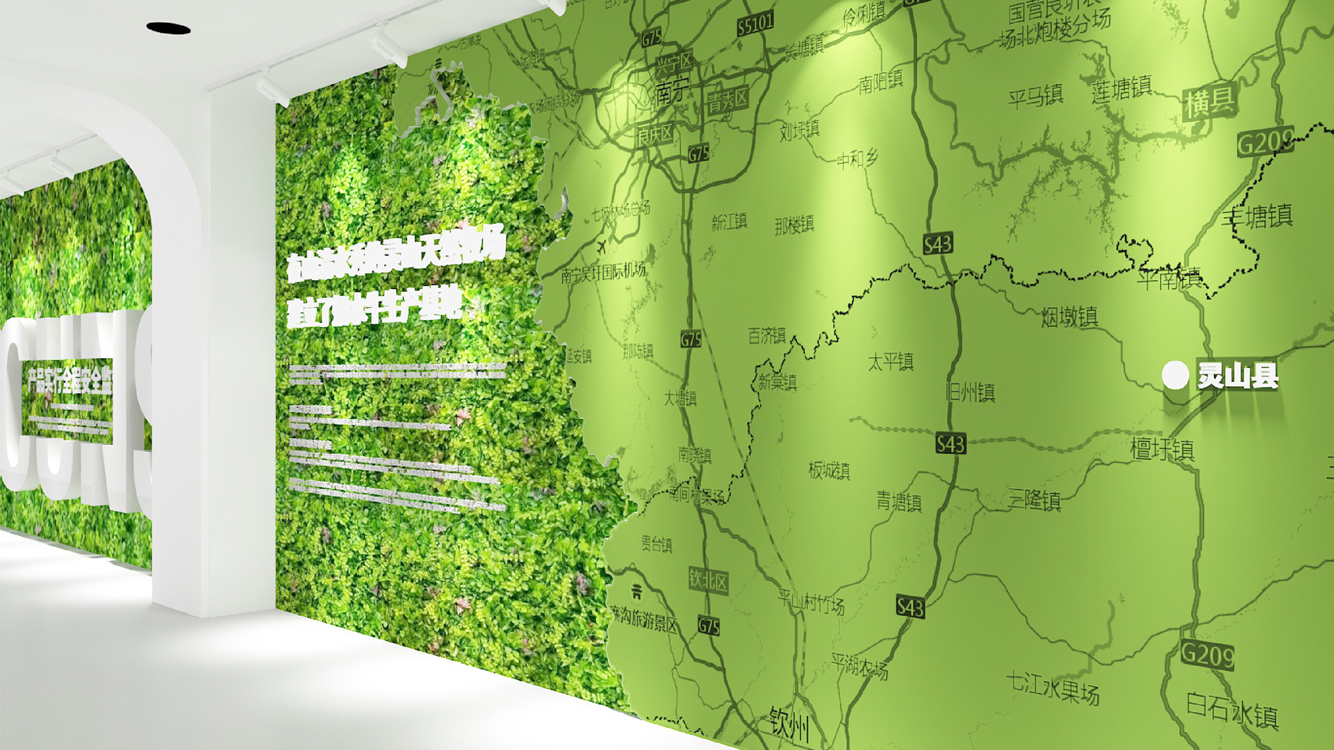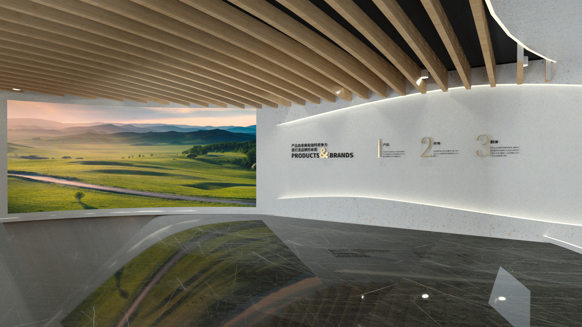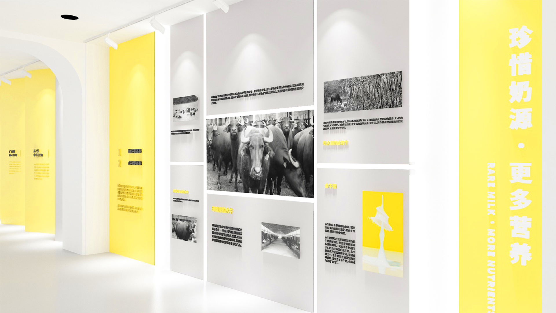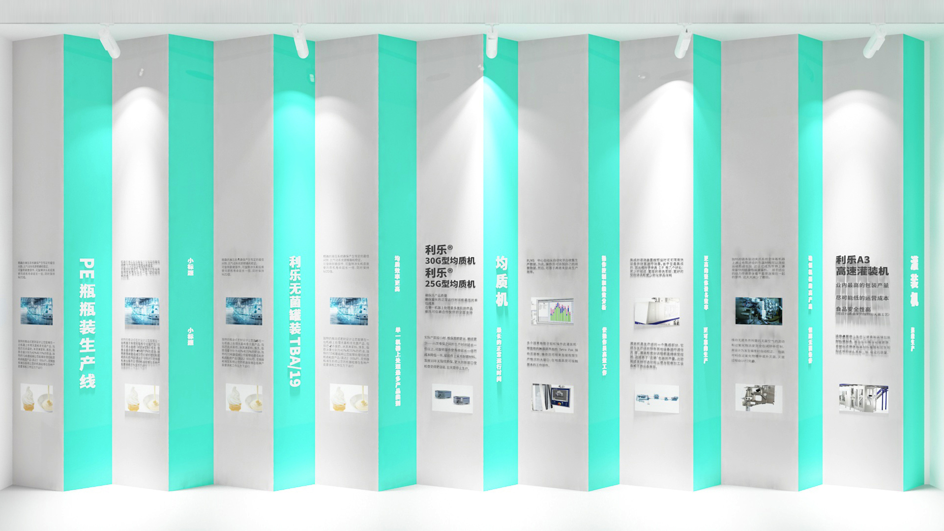 總控室后的玻璃,因為參觀走廊顏色比較豐富,考慮到如果這里也做色彩或者比較復雜的設計,會造成是視覺混亂,所以我們把這扇玻璃上的遮擋裝飾設計成和墻面一樣的白色,放上slogan,這樣整體比較統一自然。