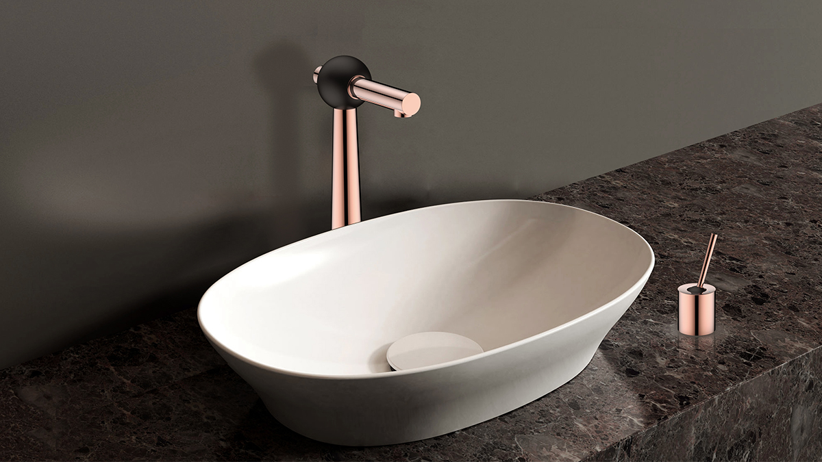O-Time系列水龍頭追隨著少即是多的理念,以極簡的幾何形體塑造出一種極致的視覺體驗。以20世紀初俄國構成主義風格為設計靈感,采用金屬管、塑料球等簡單幾何形體,通過組構拼合的方式完成水龍頭的基礎形態設計。