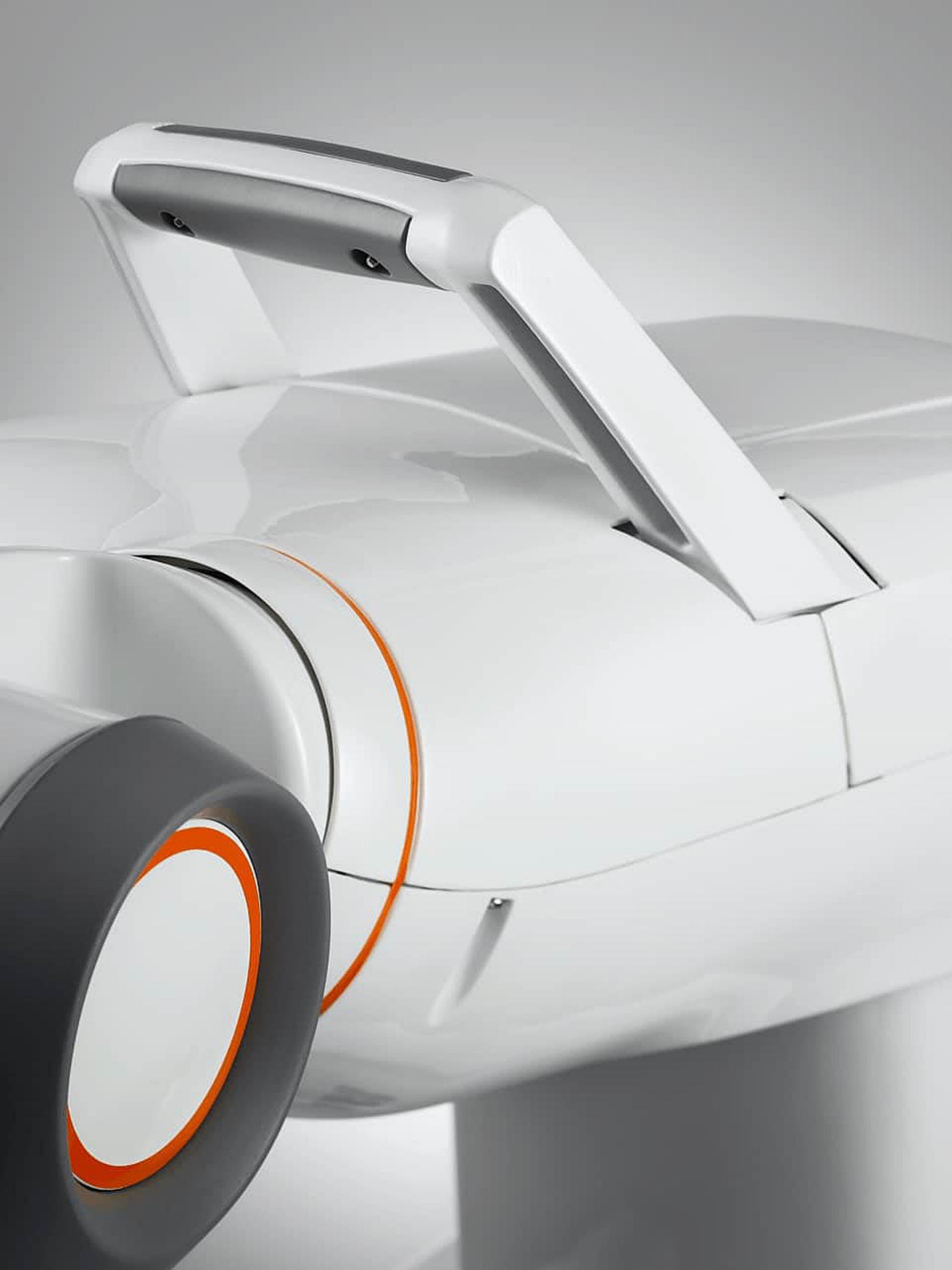 不同于其簡潔流暢的外形,作為一款高精尖的工業機器人,其內部的構造較復雜,涉及到多種造型、結構和材料等因素。在結構設計過程中木馬工業設計解決了一系列諸如材料應用,結構強度和重量控制等技術難點,以保證機械手能夠靈活地進行各項運作。 在經過反復的推敲和設計之后,木馬完成機械手的設計,與瑞典設計團隊設計的主體部位一起,組成一臺運作靈活、自由的智能協作機器人。產品獲得了ABB高管層的一致認可,一直致力于推動德國工業4.0的德國總理默克爾也對產品給予了高度評價。該項目也在各大工業展臺上亮相,獲得廣泛關注和好評,并獲得德國紅點獎best of the best獎。