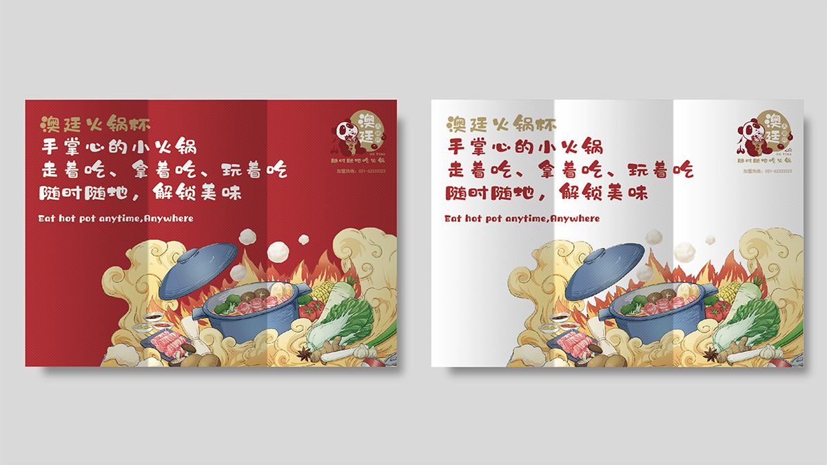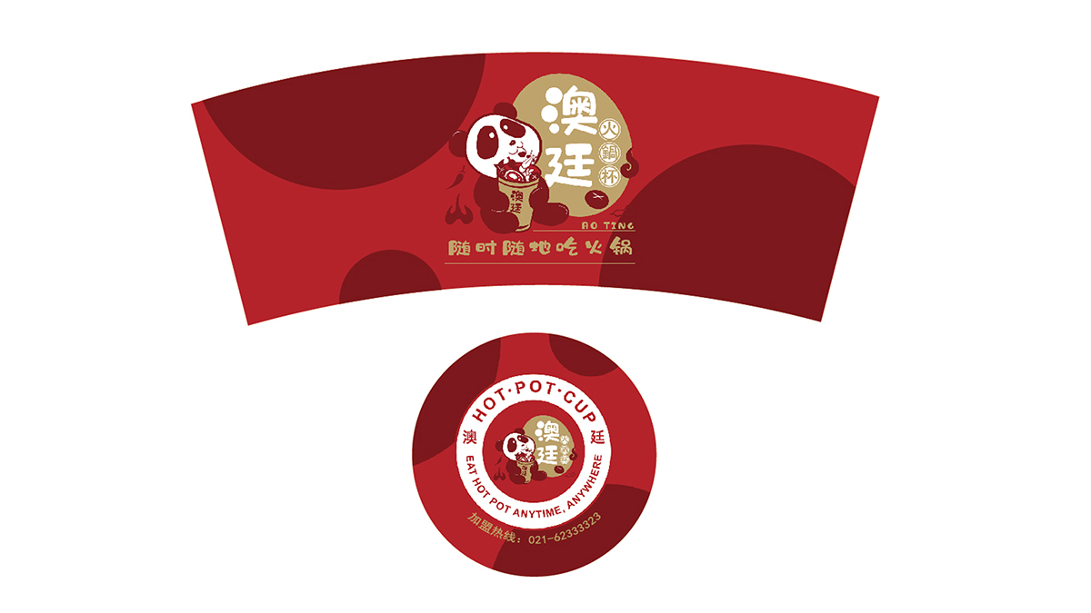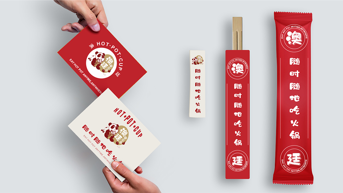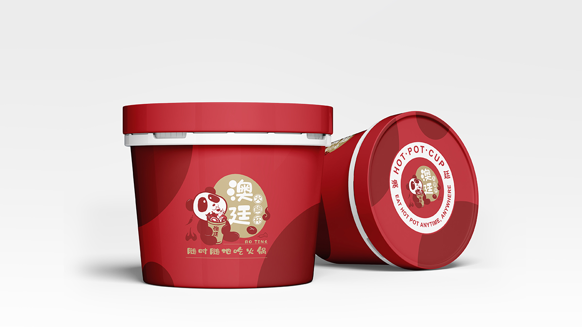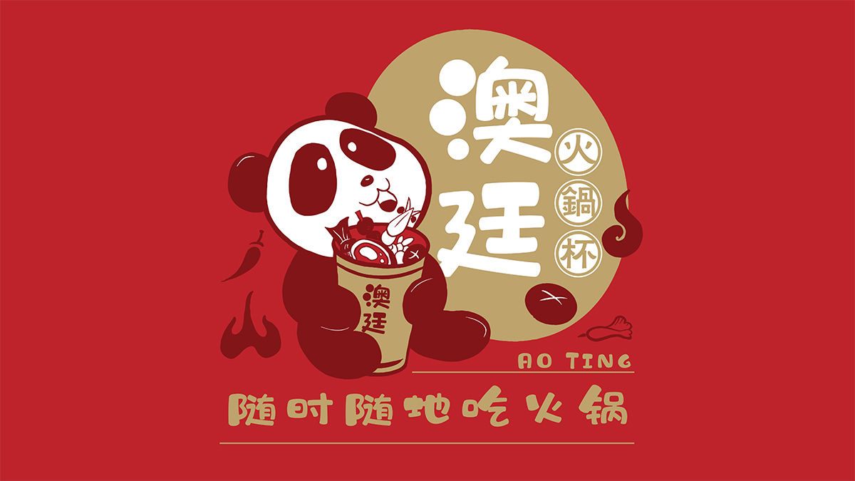 當熊貓遇上火鍋,當國寶遇到國粹,碰撞出源自中國的寶藏——澳廷火鍋杯。澳廷以熊貓為視覺錘與火鍋相結合,打造年輕可愛的插畫中國風品牌形象,貼合目標消費群體喜好,易傳播,辨識度高;色彩運用上,采用大篇幅的紅色系應用,洋溢滿滿熱情與活潑,符合火鍋調性。